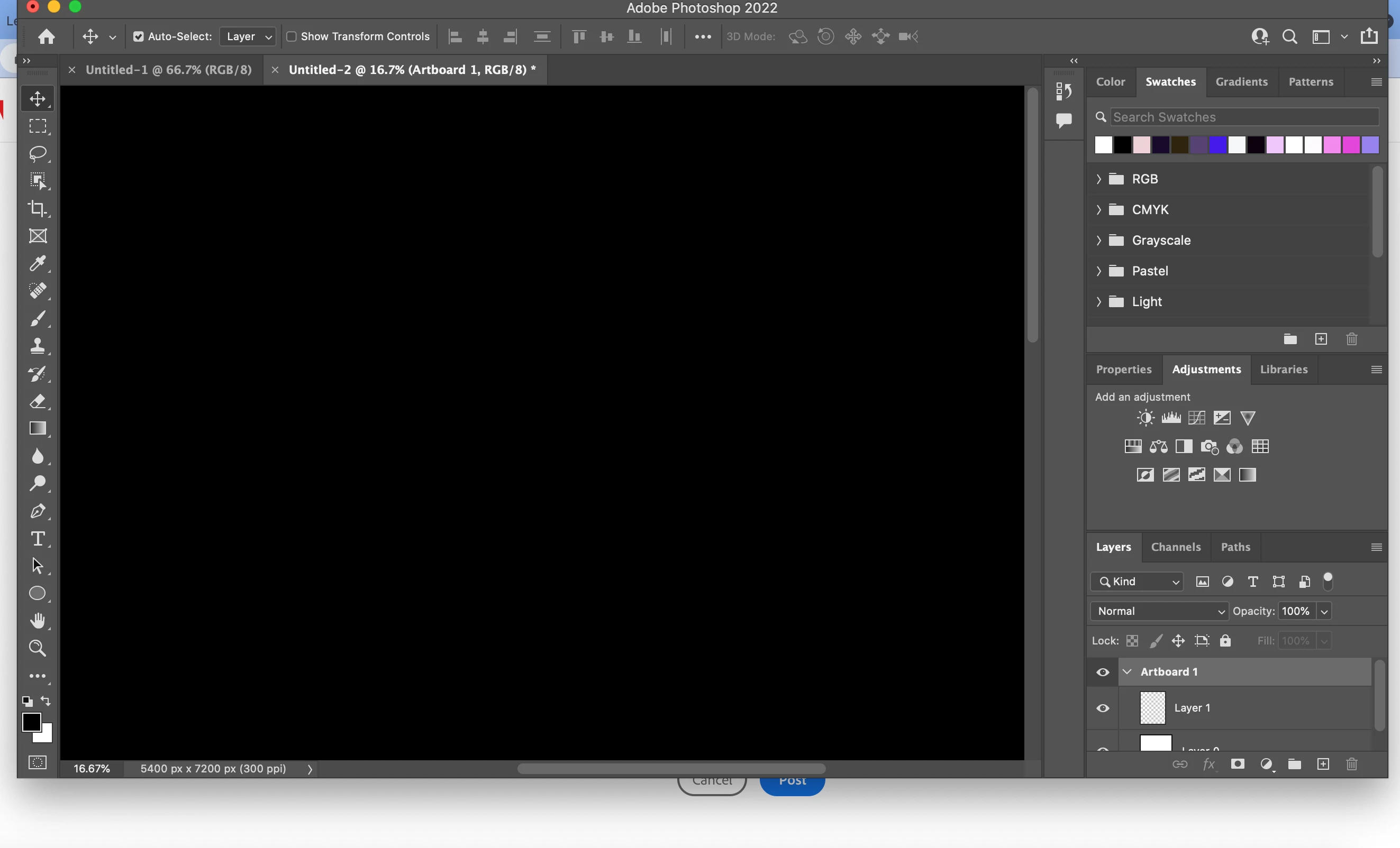 When I attempted to contact adobe and explain my problem they ended the conversation after the version I told them? I wanted to create a cool simple 3d object in adobe photoshop. When the extrusion didn't work the way it should have I created a new file so I could start over. The new file didn't have the artboard show up so I created another artbook and that did nothing. I figured since it was in the 3d workspace I would change it back to its original workspace to make sure it worked and at first it gave me the gray background now that I tried again and it's all black. Maybe this is an easy fix? If so are there any tips that could help to fix it?