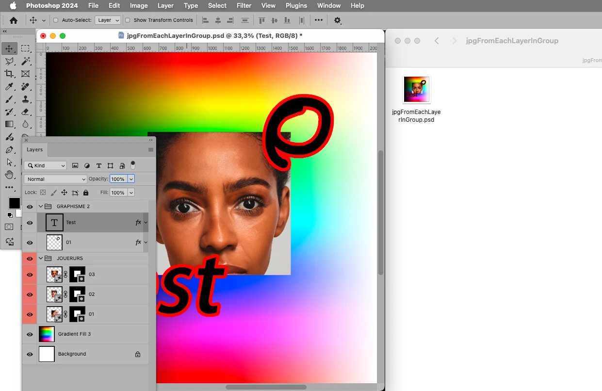 Je cherche un moyen d'automatiser ou un script pour que l'enregistrement en jpg prenne les noms des calques.