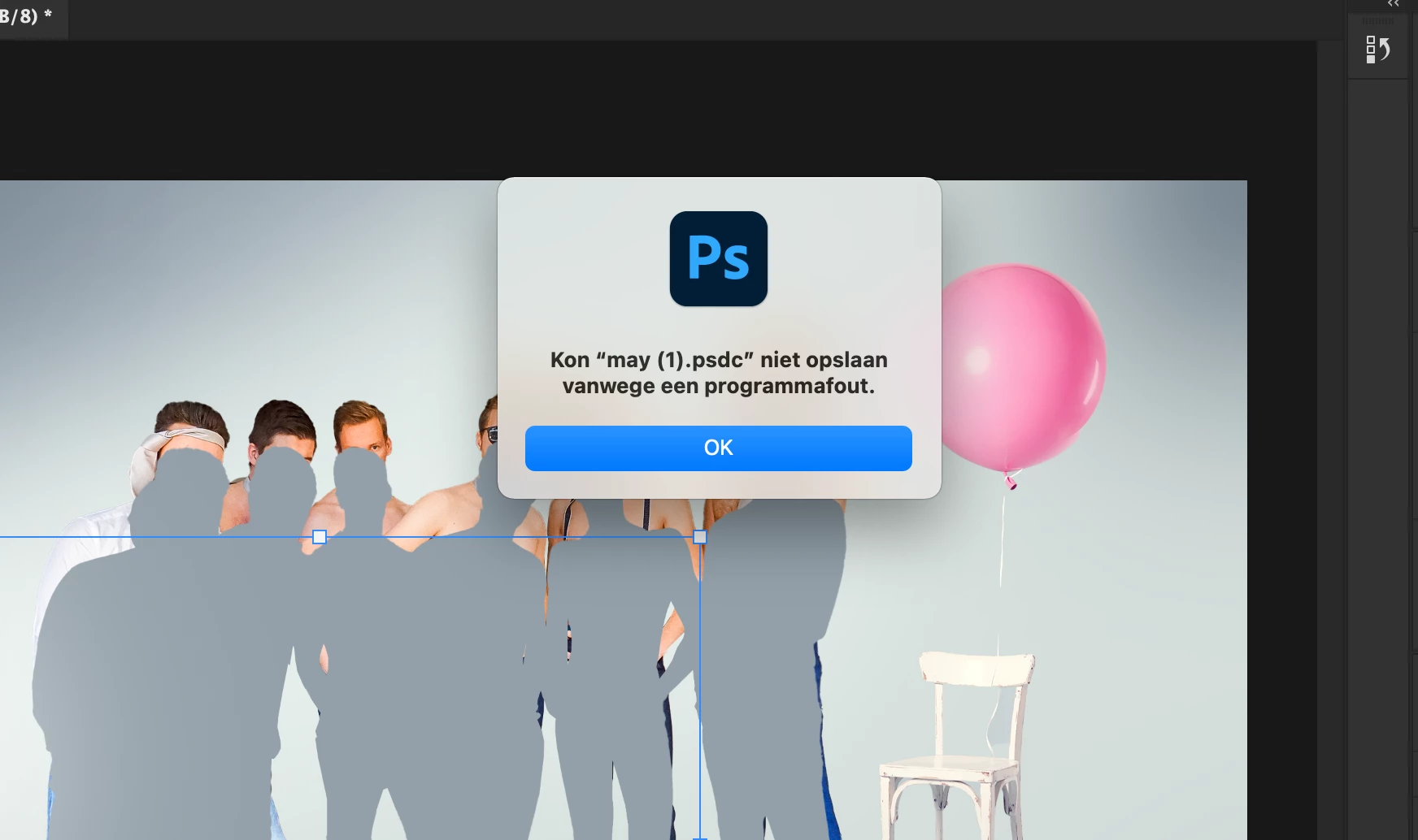 - Not being able to save the photoshop file as PSD or PSDC (cloud file);