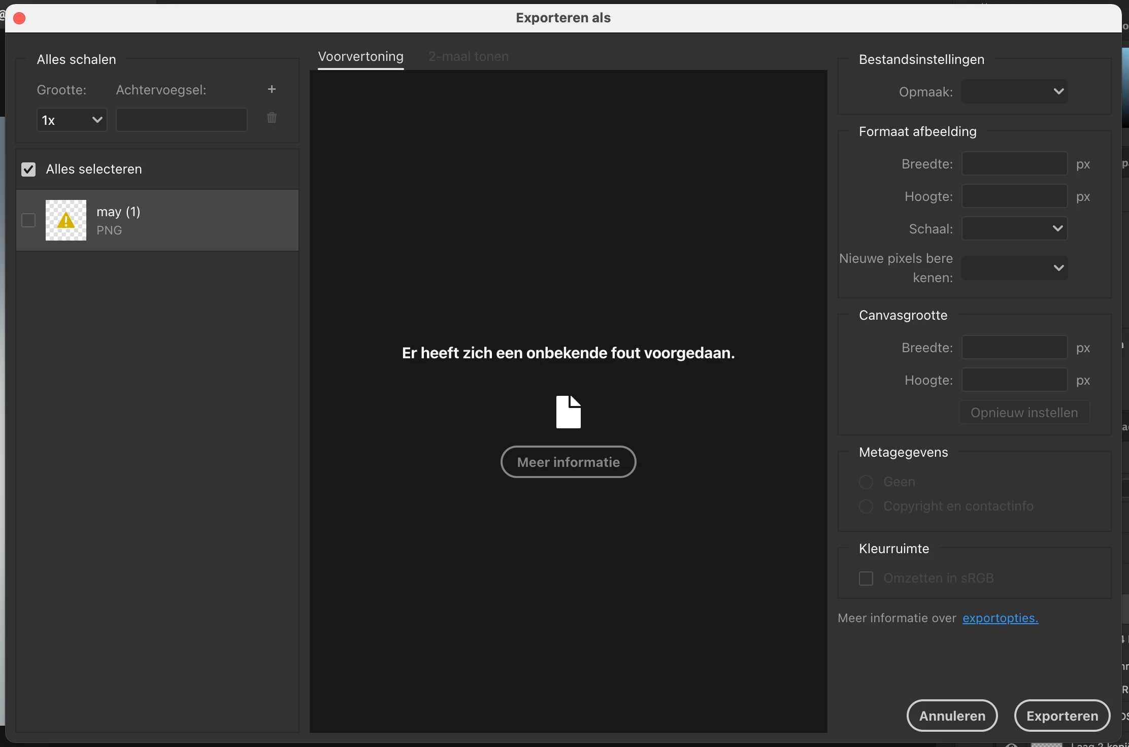 - Not being able to export a file;