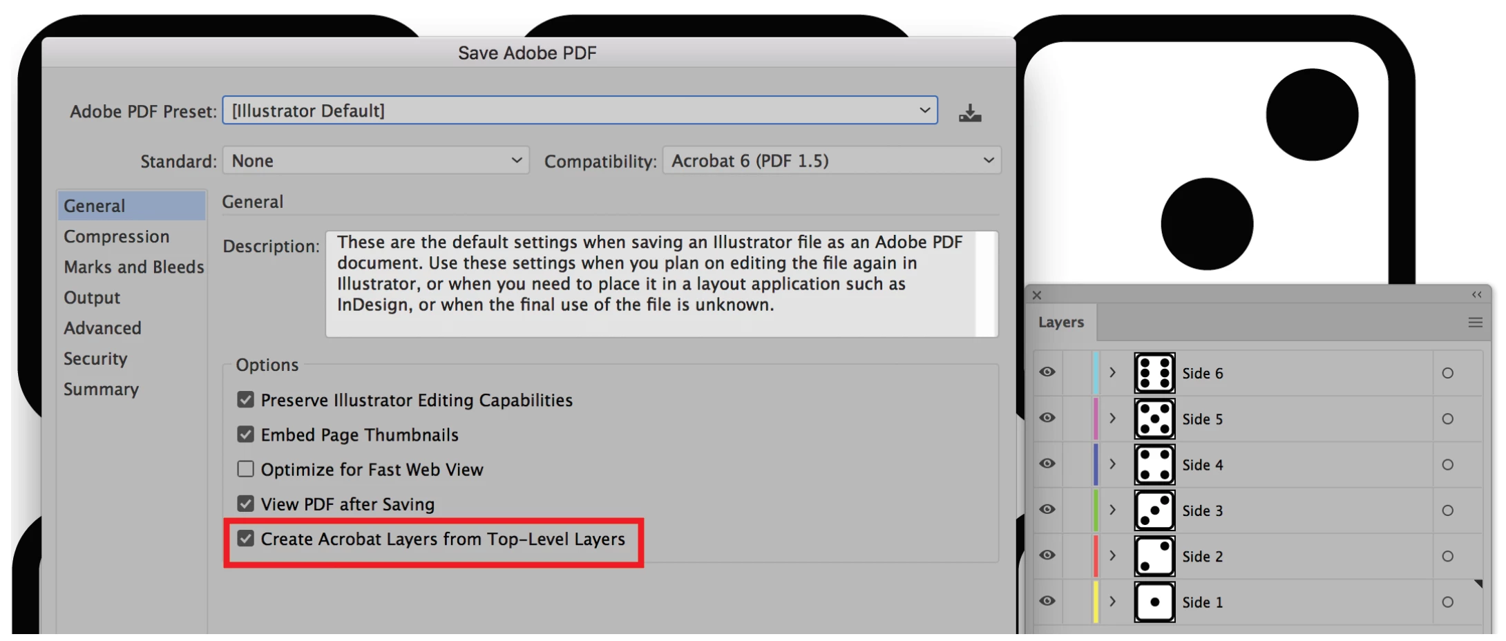Save As Photoshop PDF is selected; Layers is checked; retain Photoshop editing capablities is checked.