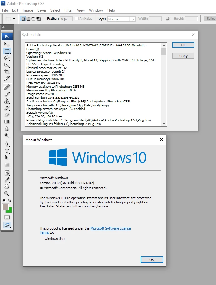 hello i use windows 10 21H2 and my photoshop cs3 not working