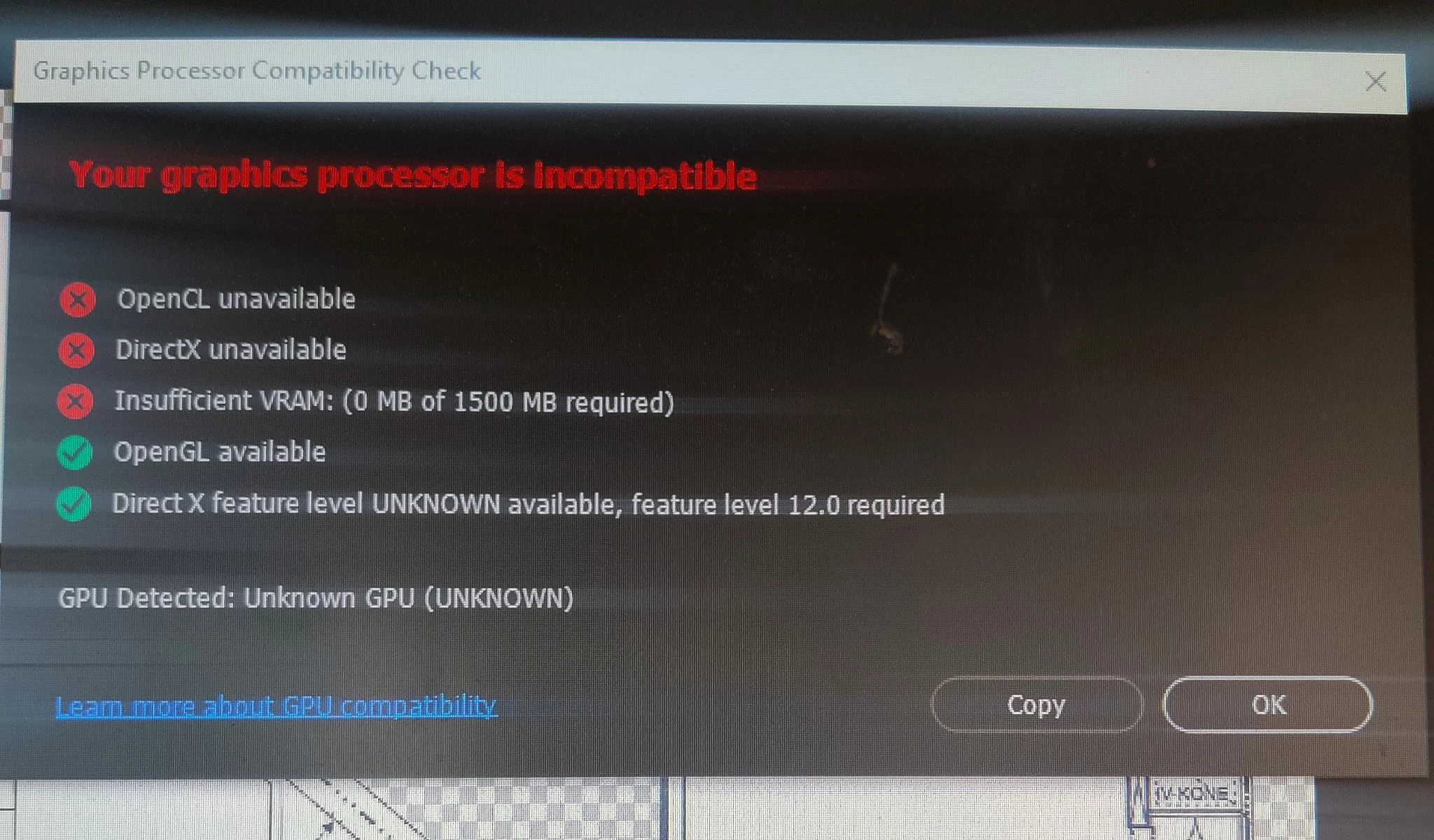 A problem with the graphics processor when I downloaded the latest version of Photoshop