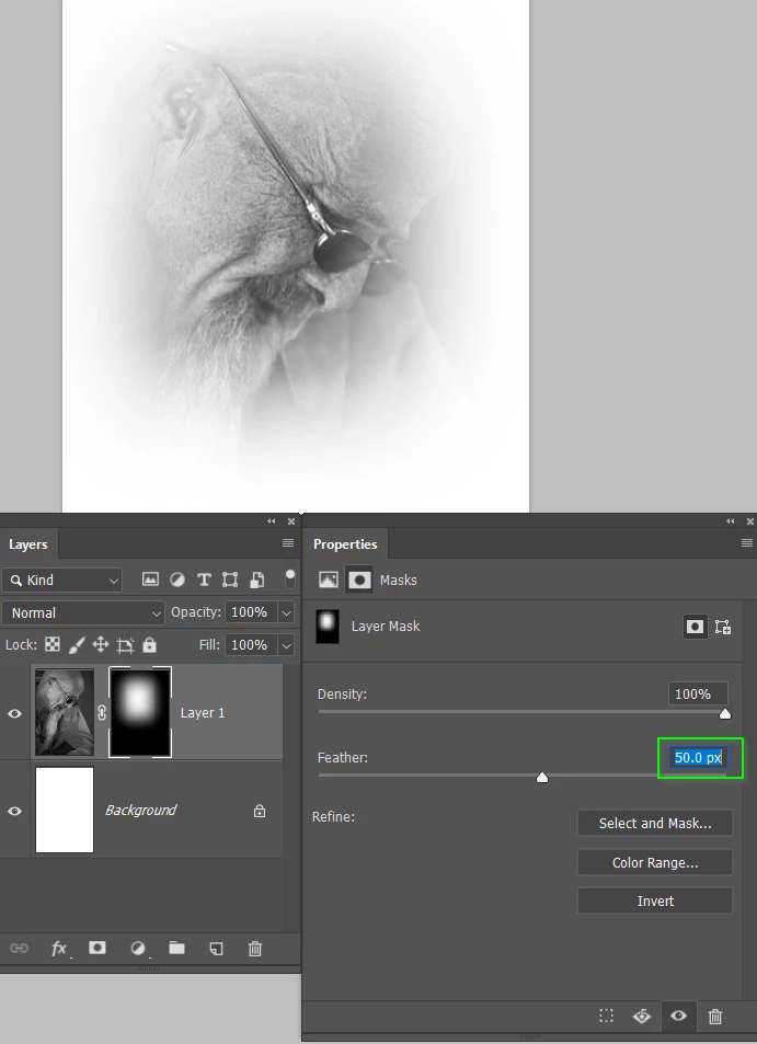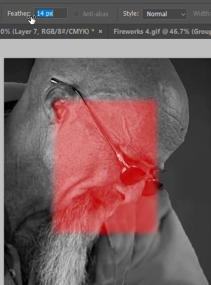 i select a part of image and mask it . now when i try use feather option show error window.