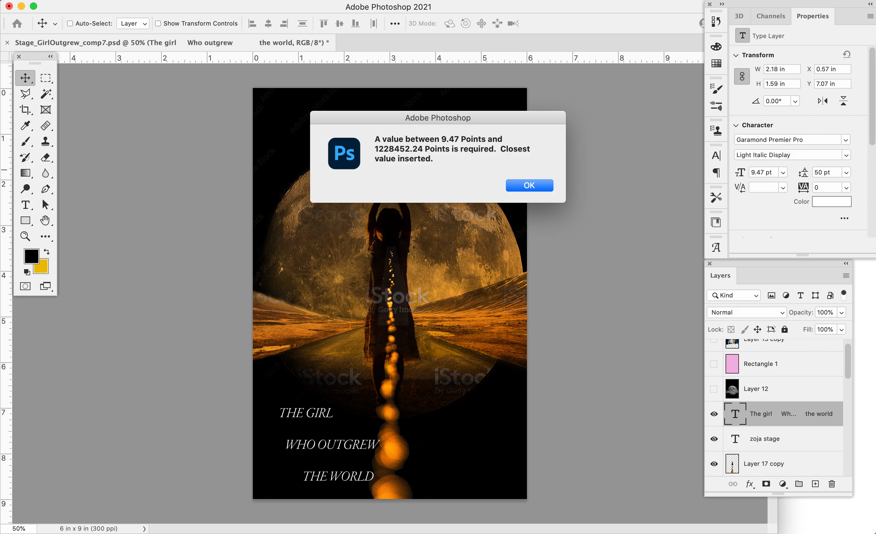 When I go to change font size, I keep gettinbg variations on the subject line error, A value between 18.98 Points and 2460578.82 Points is required. Closest value inserted. For instance. It just started yesterday. Sometimes, if I quit Photoshop and reboot it stops but then will start again later.