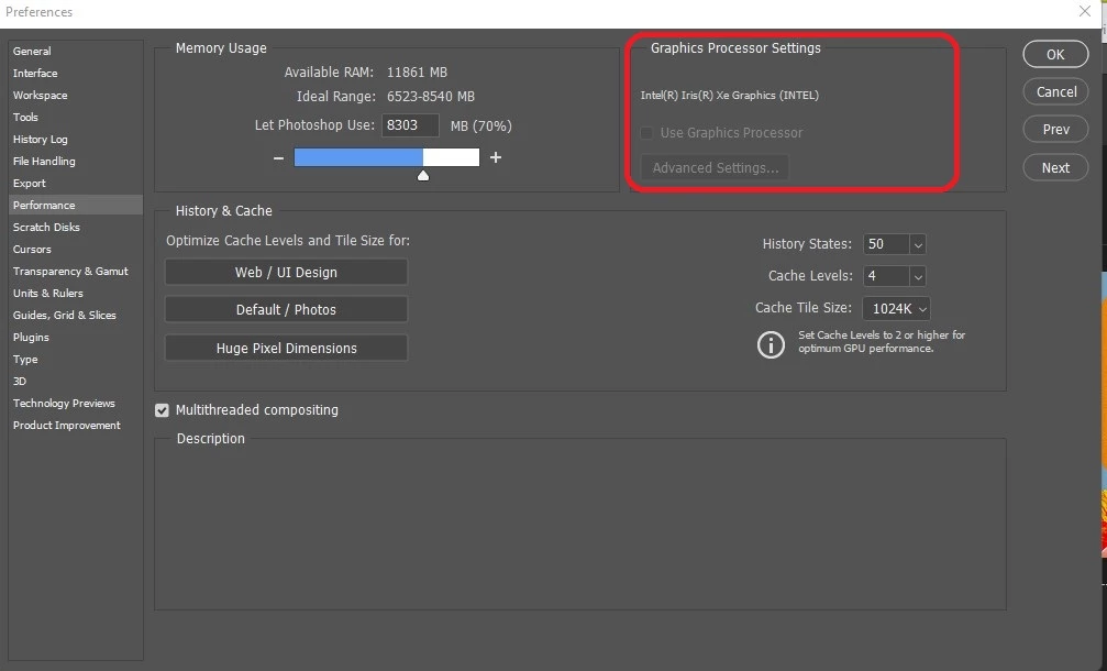 I don't know why cannot access the edit -> Preferences -> Preference ... Graphic Processor Settings. It is gray out as shown in the image below.