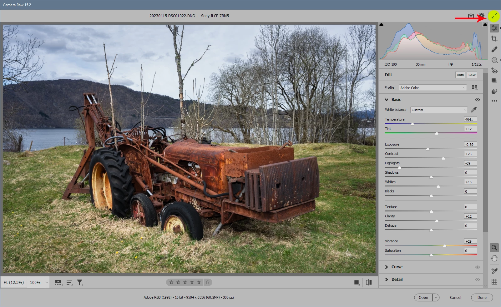Although the request seemed to be adequate - "adobe camera raw full screen image" without quotes.