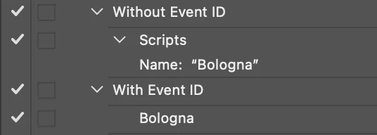 3. Alternatively, can I use runMenuItem for any of the scripts? I tride "Automate: Bologna" and "Scripts: Bologna" and neither worked.