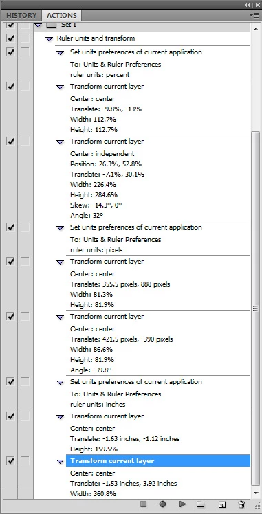 Can anybody suggest why photoshop is recording my transform by percentage and not the pixels that I actually use?