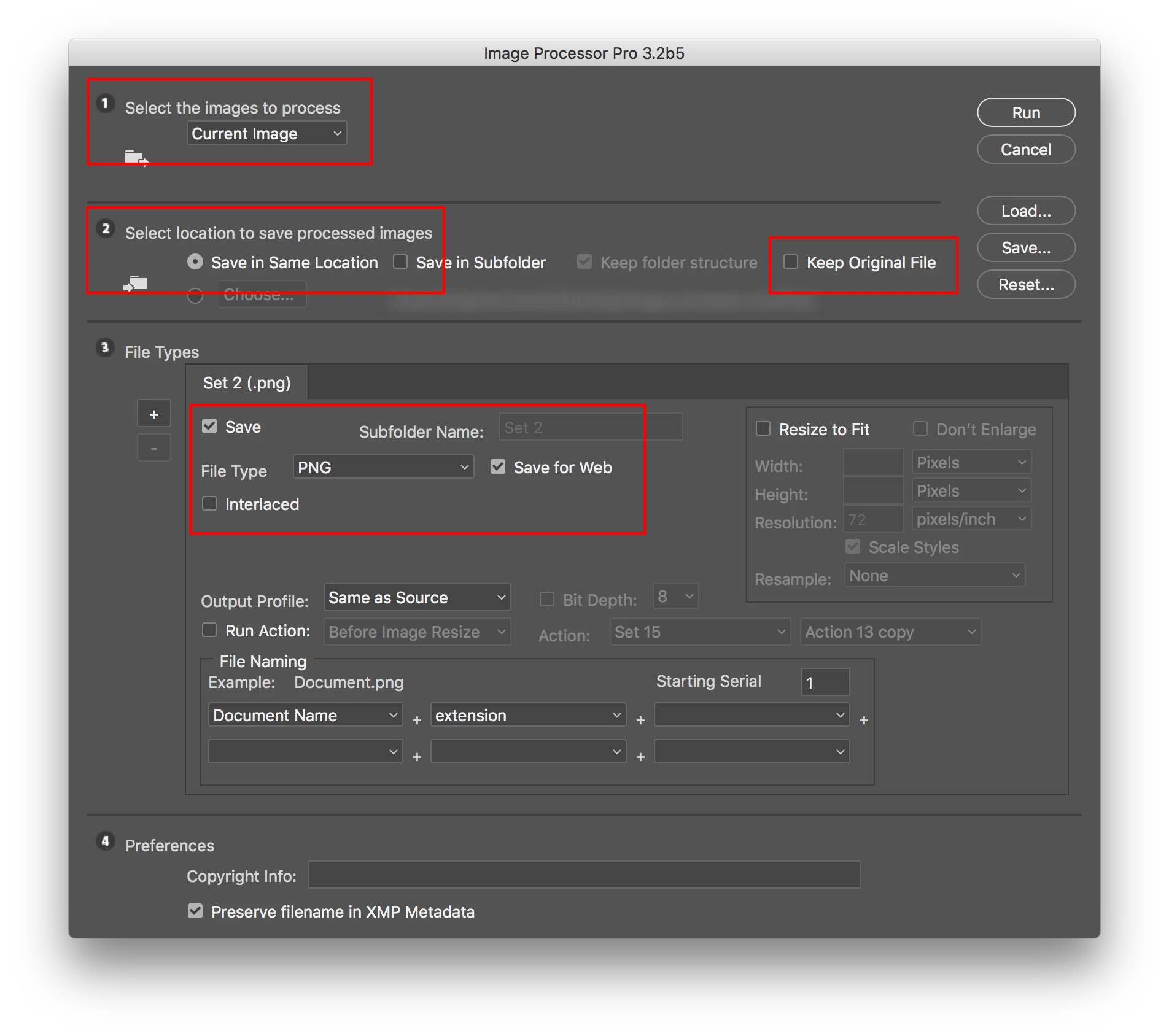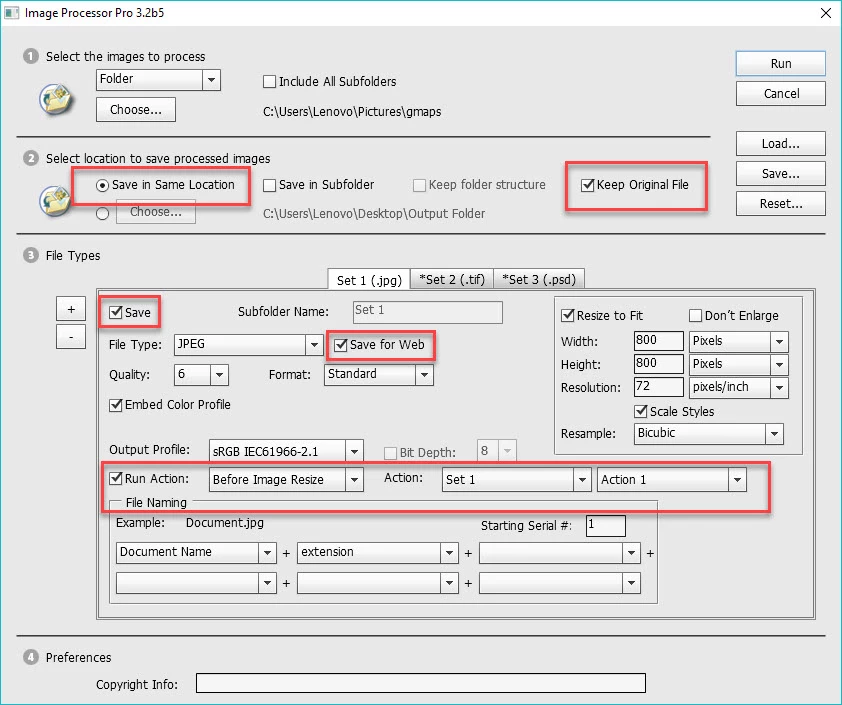 Every mehtod Ive tried so far seem to have a flaw. Like no matter what file I select, it keeps saving it back to the folder that was used when the action was created, rather than the folder of the soruce file.