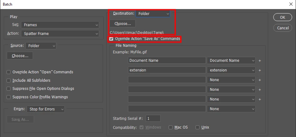 I am trying to batch export files using a new Action I wrote and they aren't appearing. I can see the Action running but when I go to the destination folder, no files are there. Attached is a screen shot of the batch export screen. I tried runnning Actions I had run successfully in the past and they also did not generate files. I have tried running multiple Actions within a file and then as a Batch and no Actions are generating files in the designated destination folder. Does anyone have any idea why this could be happening?