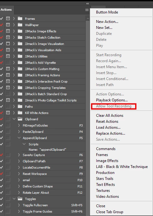 Actions- not recording brush stroke