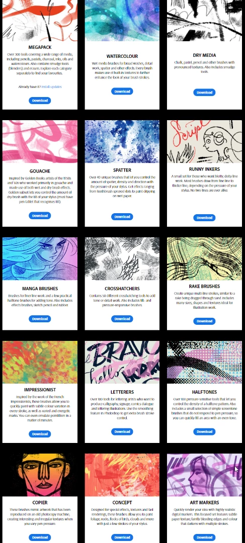 There are a lot of things to download. I could happily download and install them all. But I want to make sure I don't install duplicates of brushes.