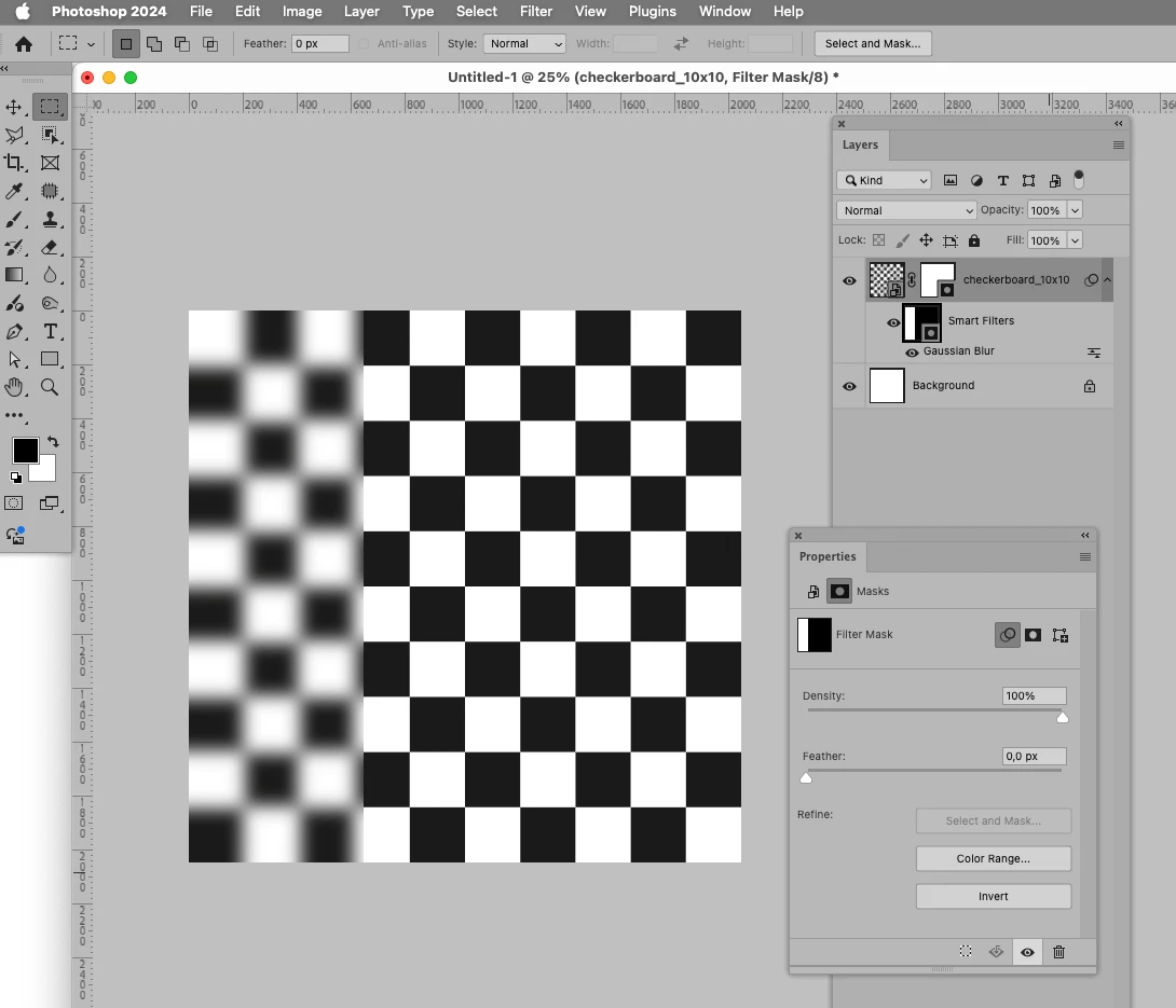 I want to add a feathered blur to the sides of the image. I used a marquee selection tool and filled it with Gaussian blur. But the edges look sharp. How do I feather it? I added a mask and under the properties panel increased the feather but it doesn't seem to work.
