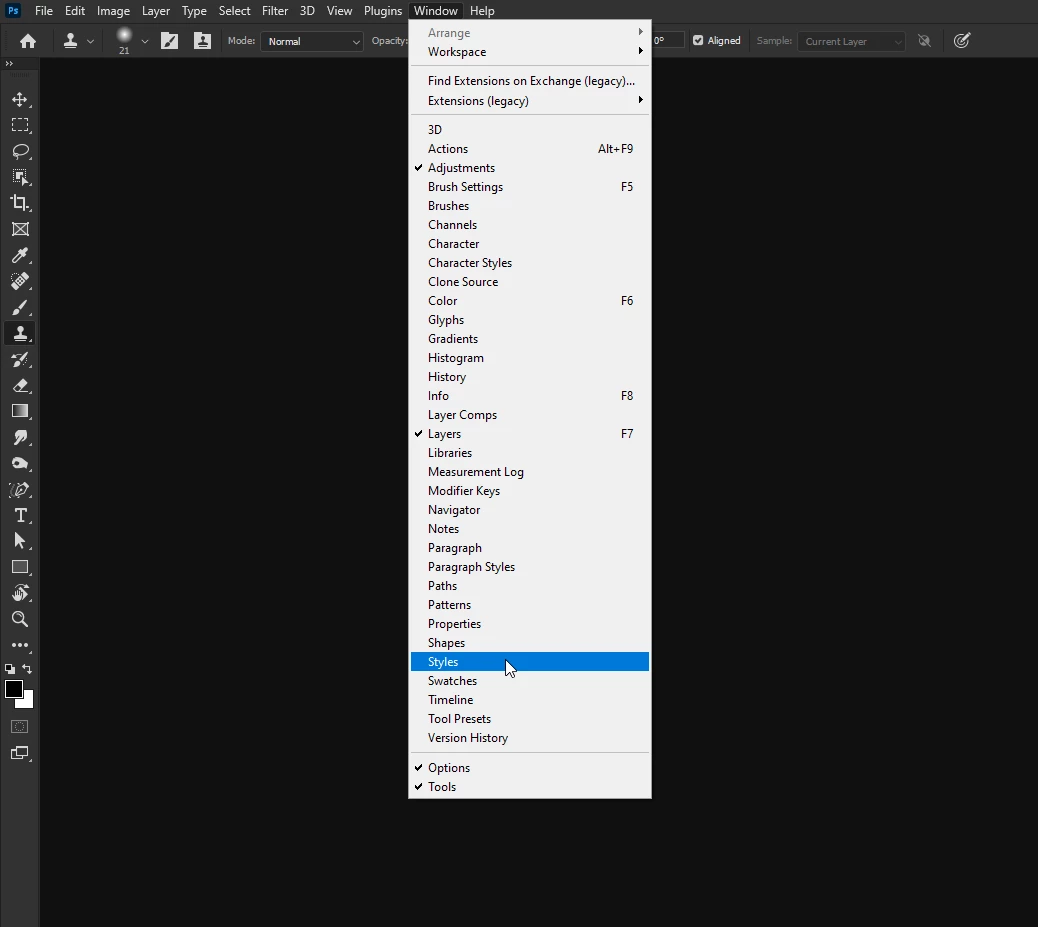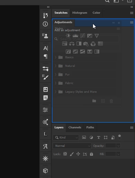 Go to Window > Styles, it may open as a tab or floating window, just drag it to the panels window