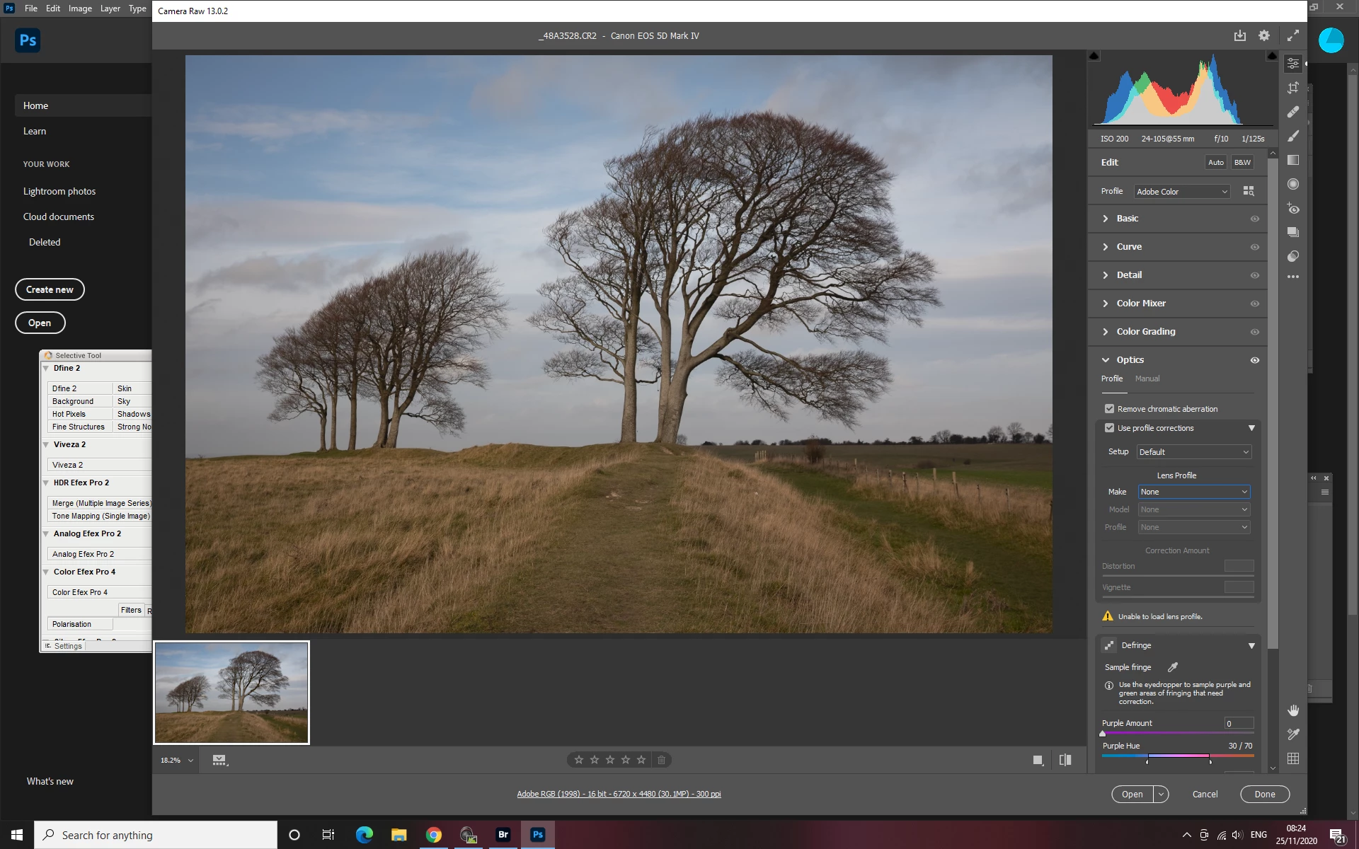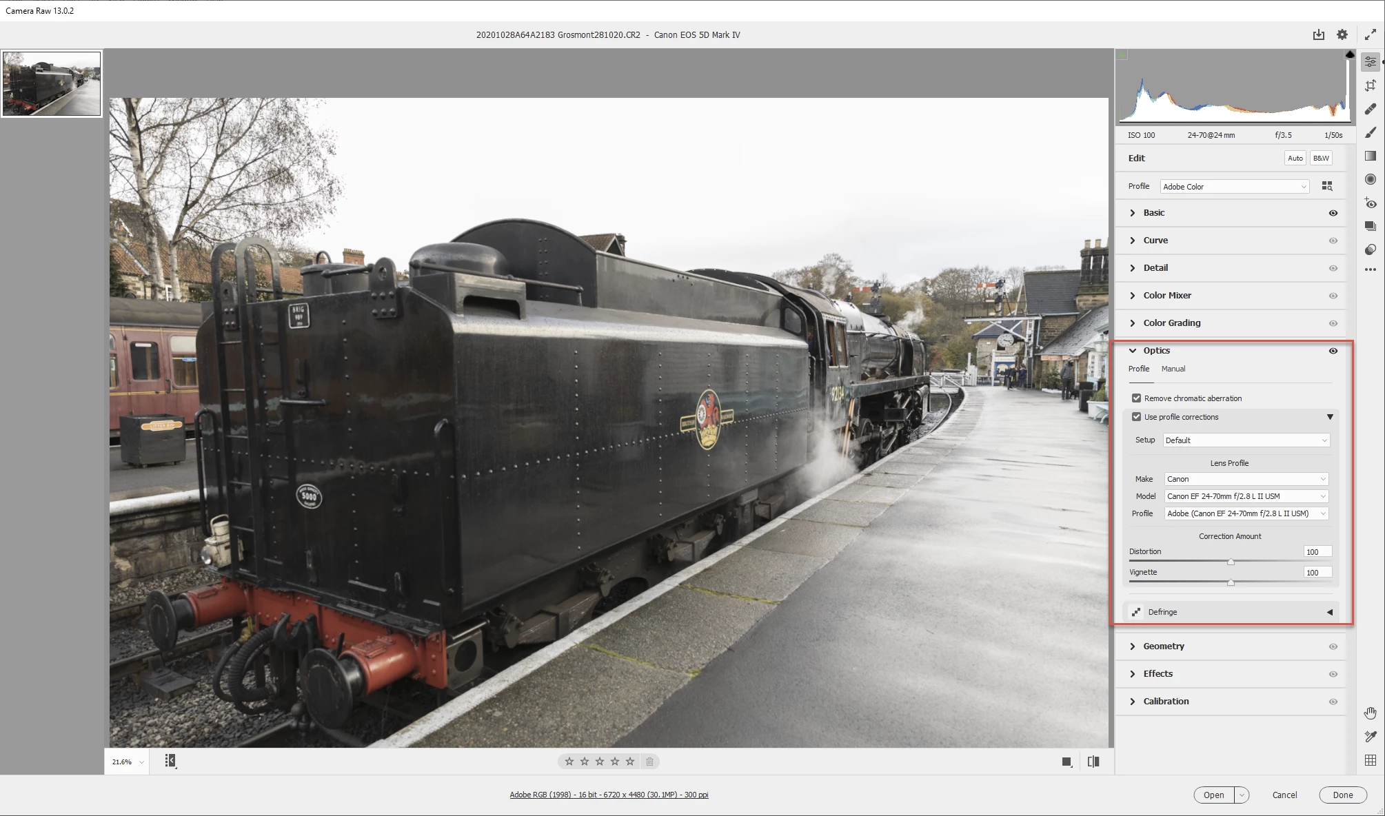 Adobe Camera Raw 13.0.2 Optics not showing Canon
