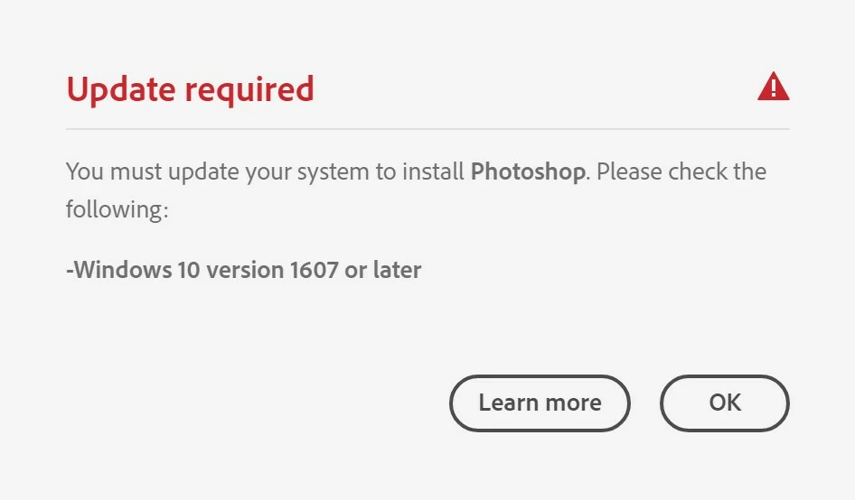 I have no idea why Adobe CC thinks my PC is running an older version of the OS and cannot update PS to v23. The same goes for all other software from Adobe CC:
