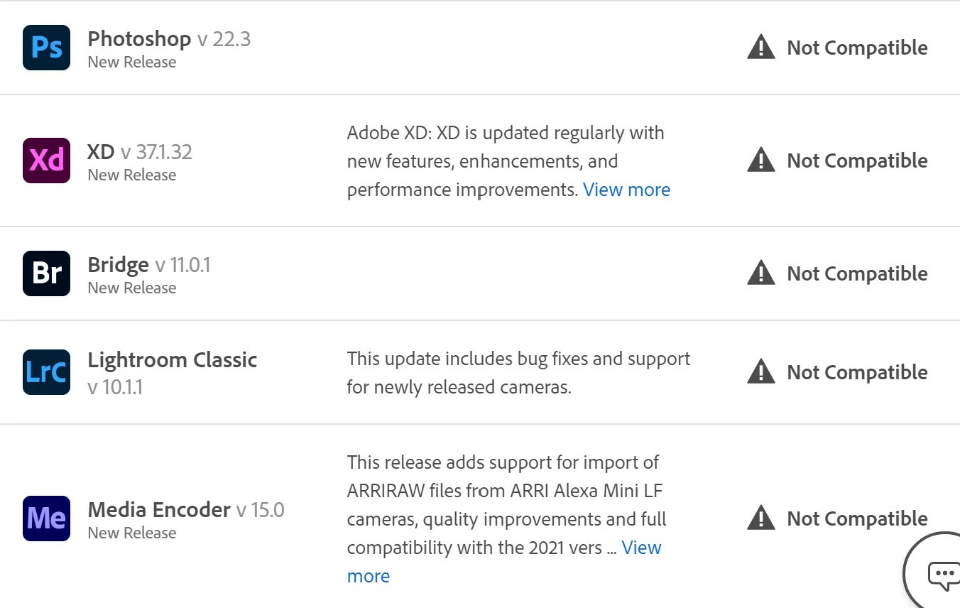 Been having trouble updating PS to any version of v22. Everytime I load up Adobe CC app, a notification pops up saying something along the lines "Adobe Creative Cloud is currently running in compatibility mode and likely can't install new versions of software." When I go to install v22 of PS, I see this: