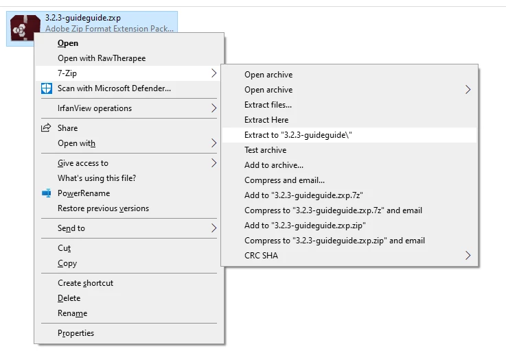 Then unzip the 3.2.3-guideguide.zxp using a free program like 7-Zip