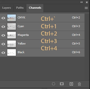 Note : I want CMYK= Crtl+` section Cyan = Crtl+1, Magenta = Crtl+2, Yellow = Crtl+3, Black = Crtl+4