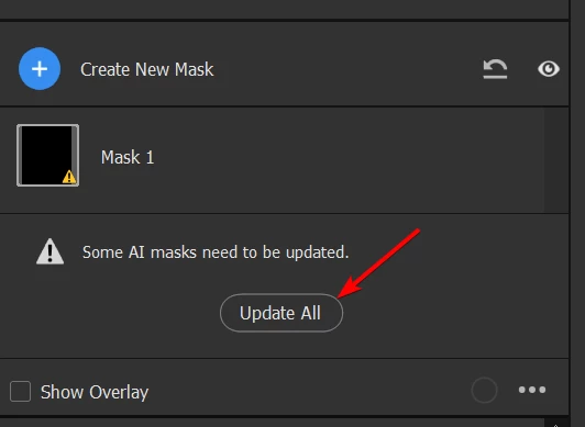 - Switch to the Masking mode and click "Update All" - or just press Ctrl+Shift+U immediately after opening Camera Raw.