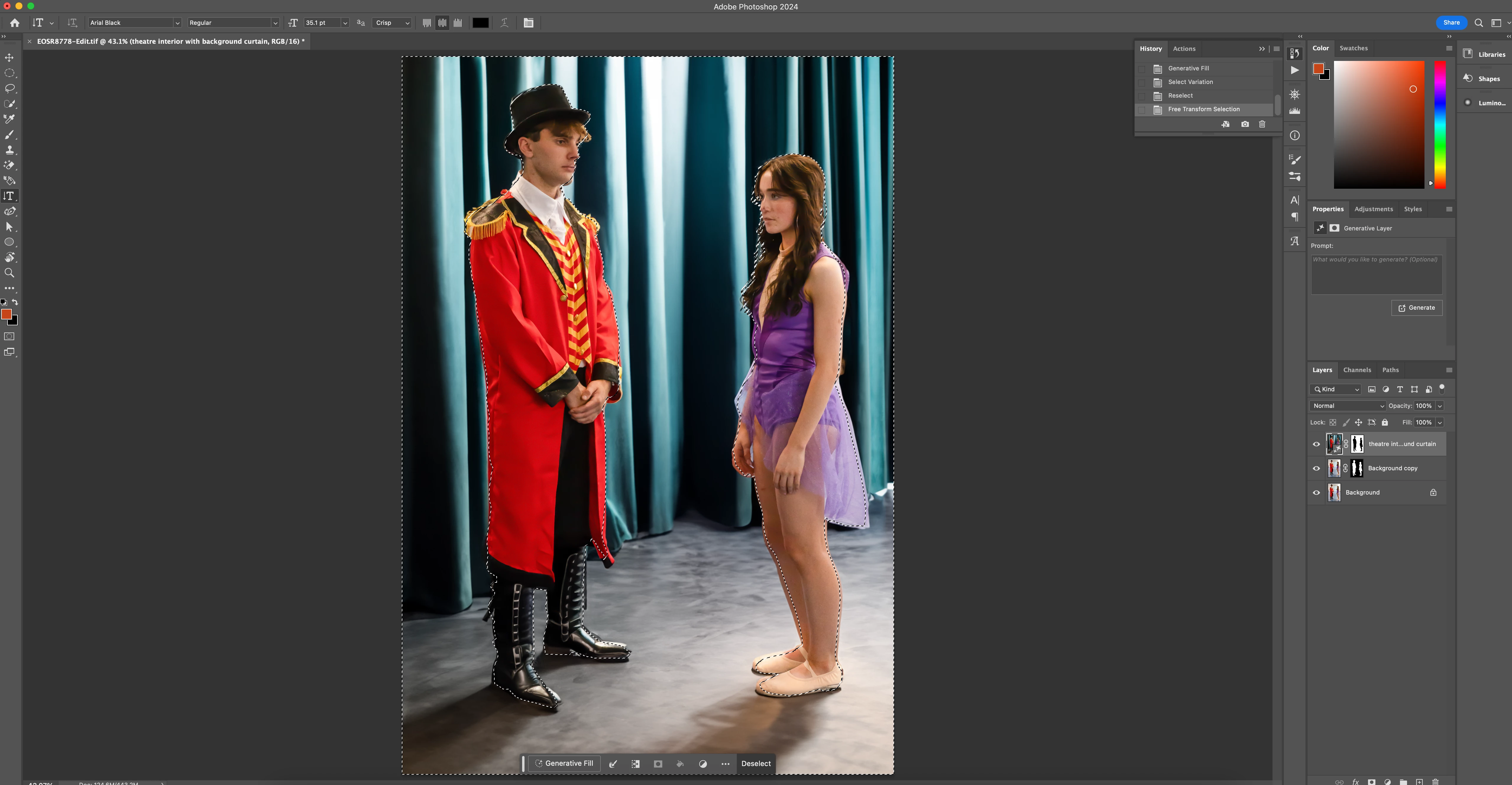 I want to change a background using AI Generate but it wants to add to my subject(people). I refined my selection in Select and Mask and saved it to a new layer, I then inverted the selection and typed prompt in Ai toolbar. It adds to my subject as part of the background so I can not get rid of the extra face etc.