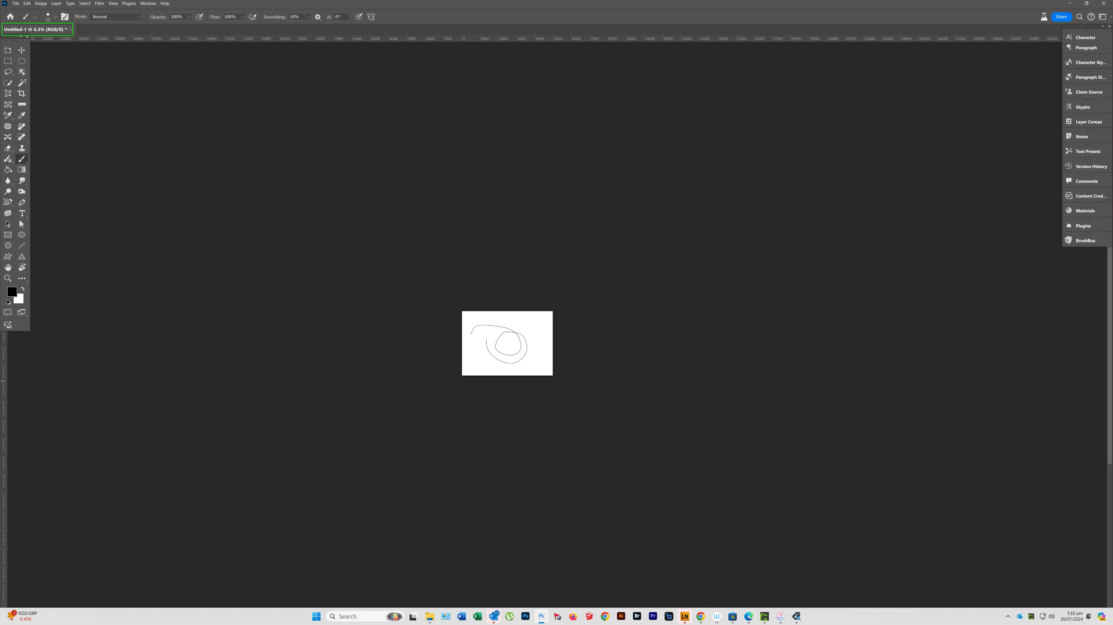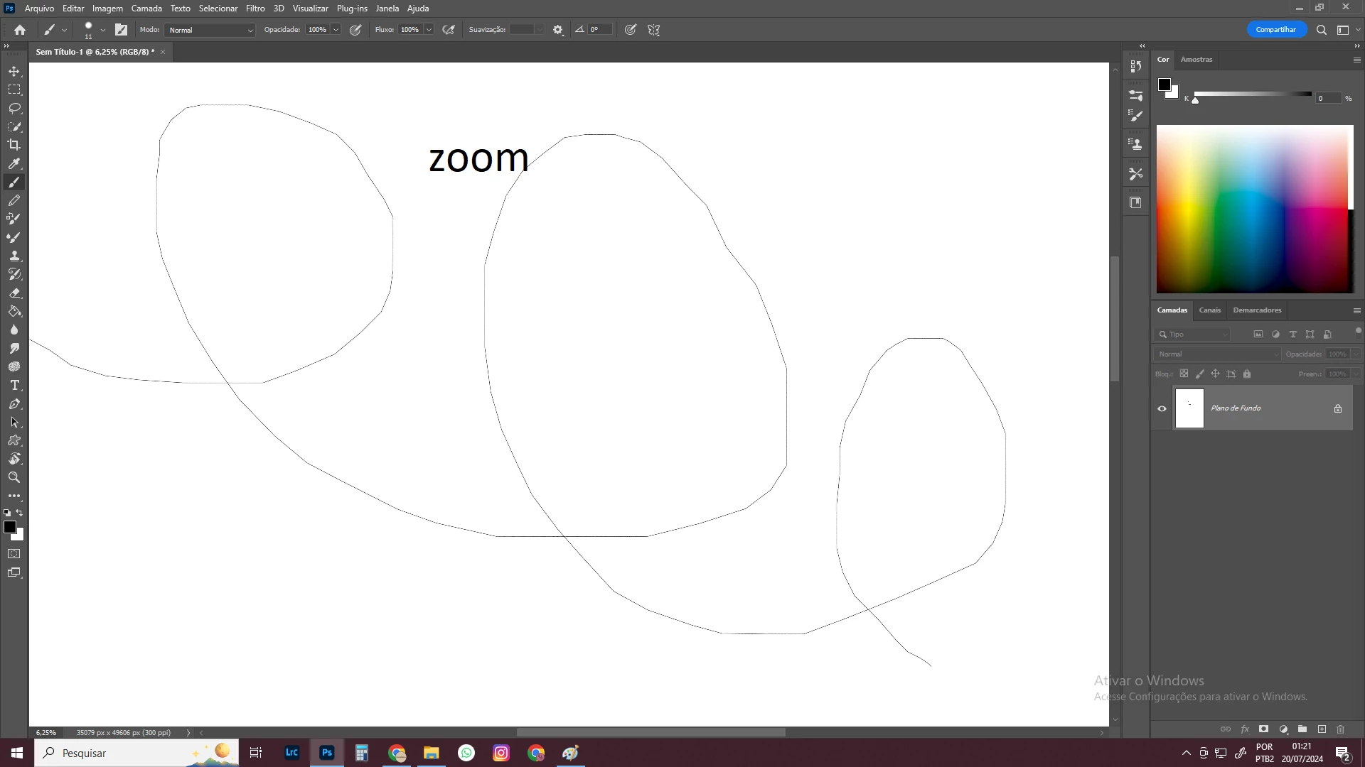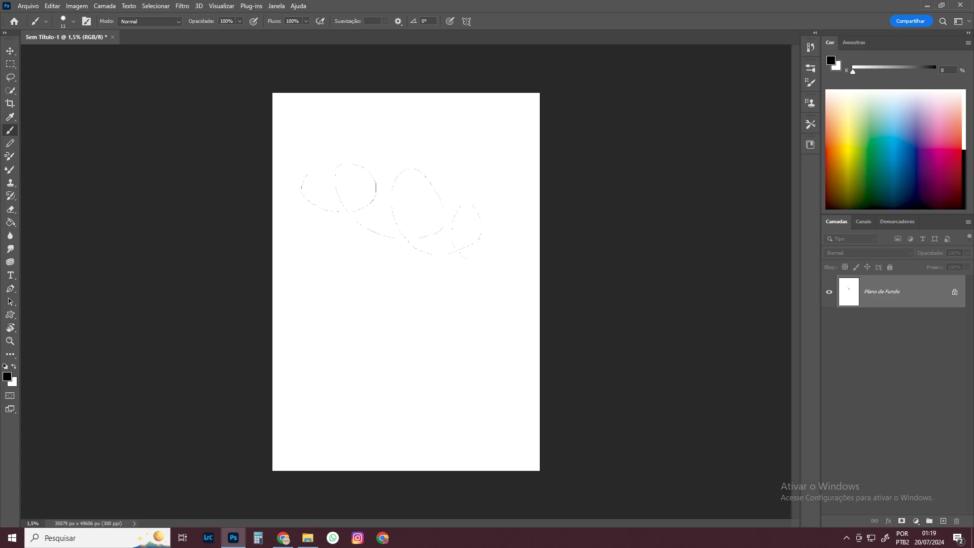 crio um arquivo do tamanho A3 de 300 ppi , faço uma linha curva com meu brush que está com o tamanho 11 e a curva não aparece direto , fica toda falhada , quando dou o zoom o traço está lá . o espaçamento do pincel está em 1%.