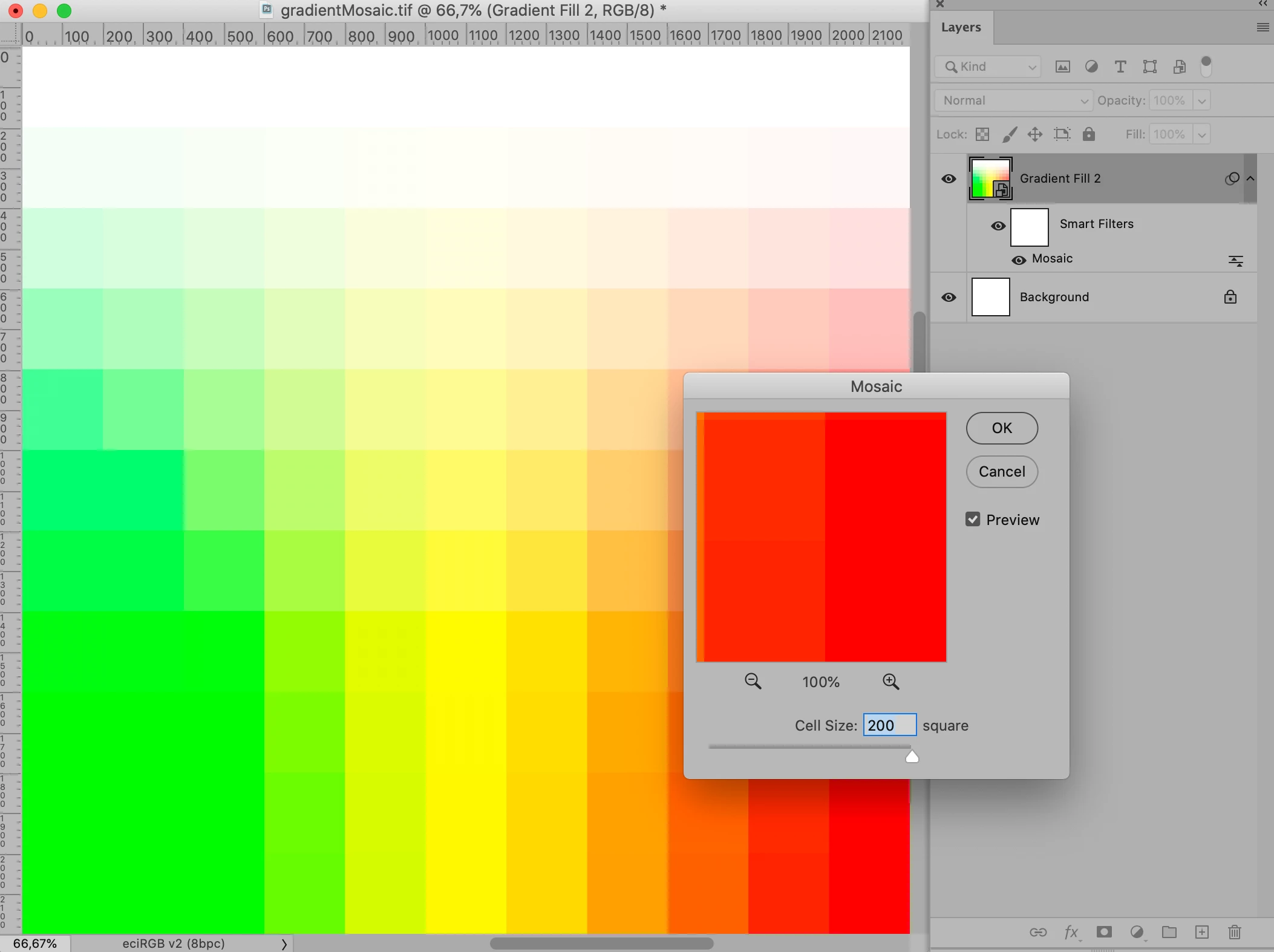 It would be nice small rectangles, each filled with one type of yellow, similar with Excel cells, but Excel does not provide so many variations of yellow.