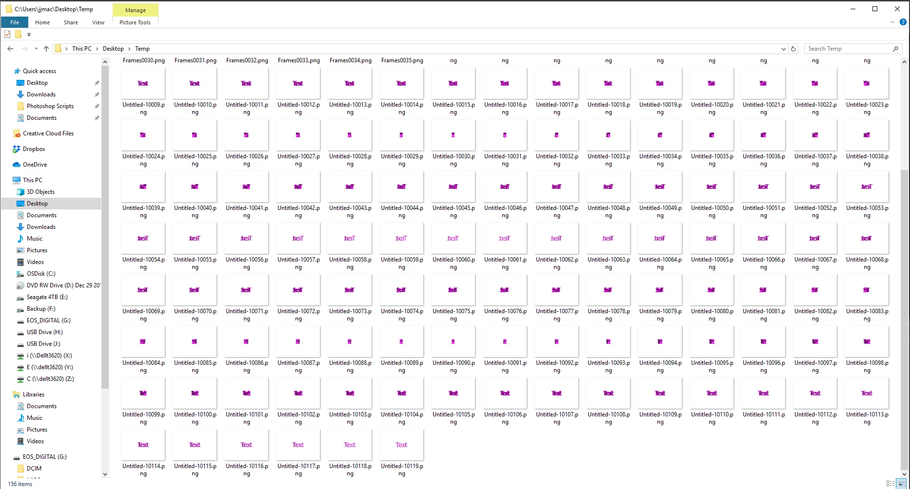 Animated a 3D text to spin using timeline keyframes. Plays fine in the timeline, but when I [Render Video] -> [Photoshop Image Sequence] it outputs 150 identical files, all seemingly the 1st frame. Have tried as PNG and JPEG, same results.