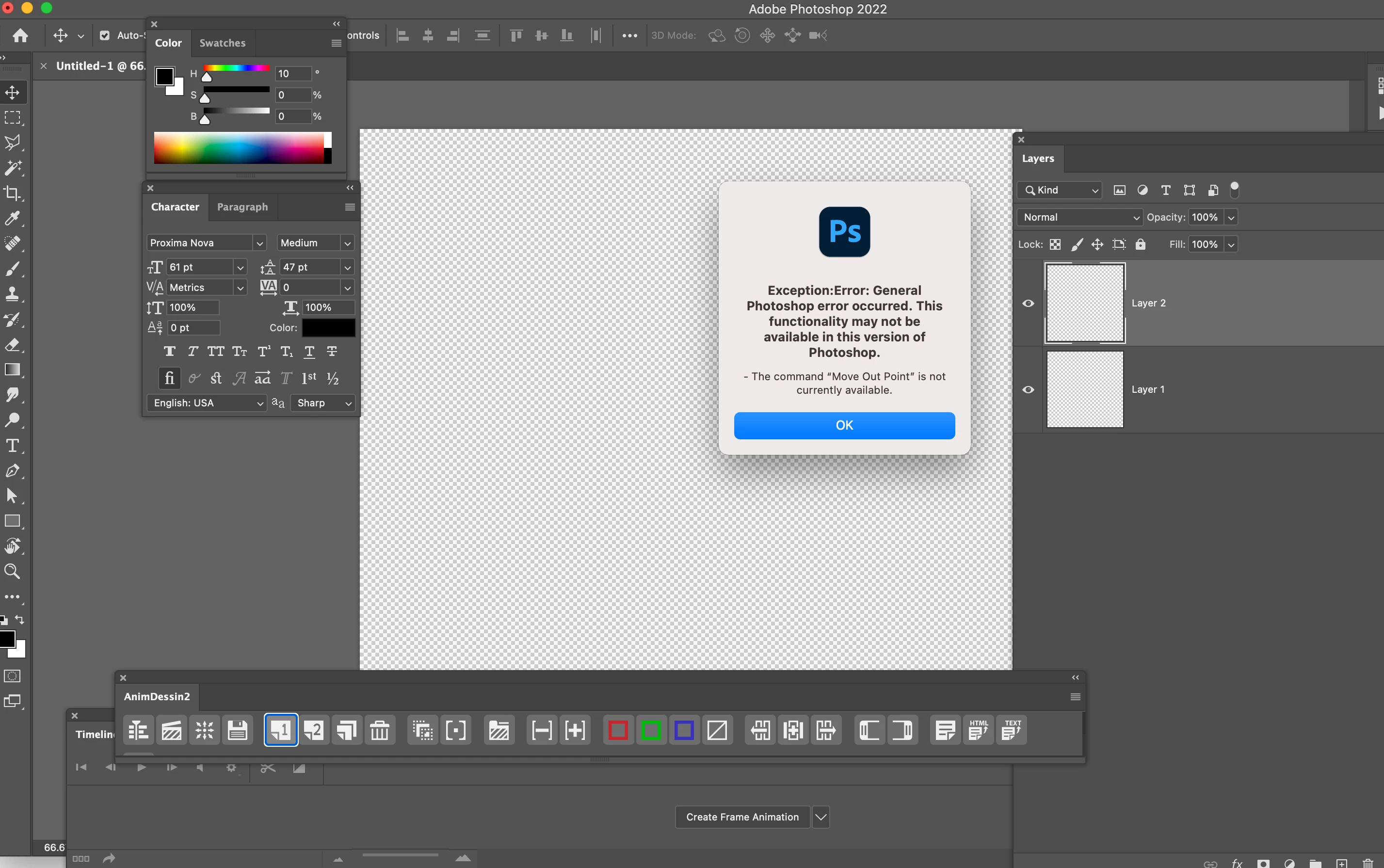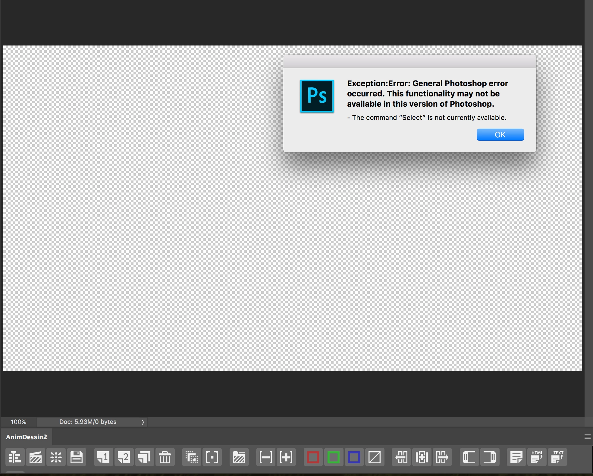 Exception:Error: General Photoshop error occurred. This functionality may not be available in this version of Photoshop.