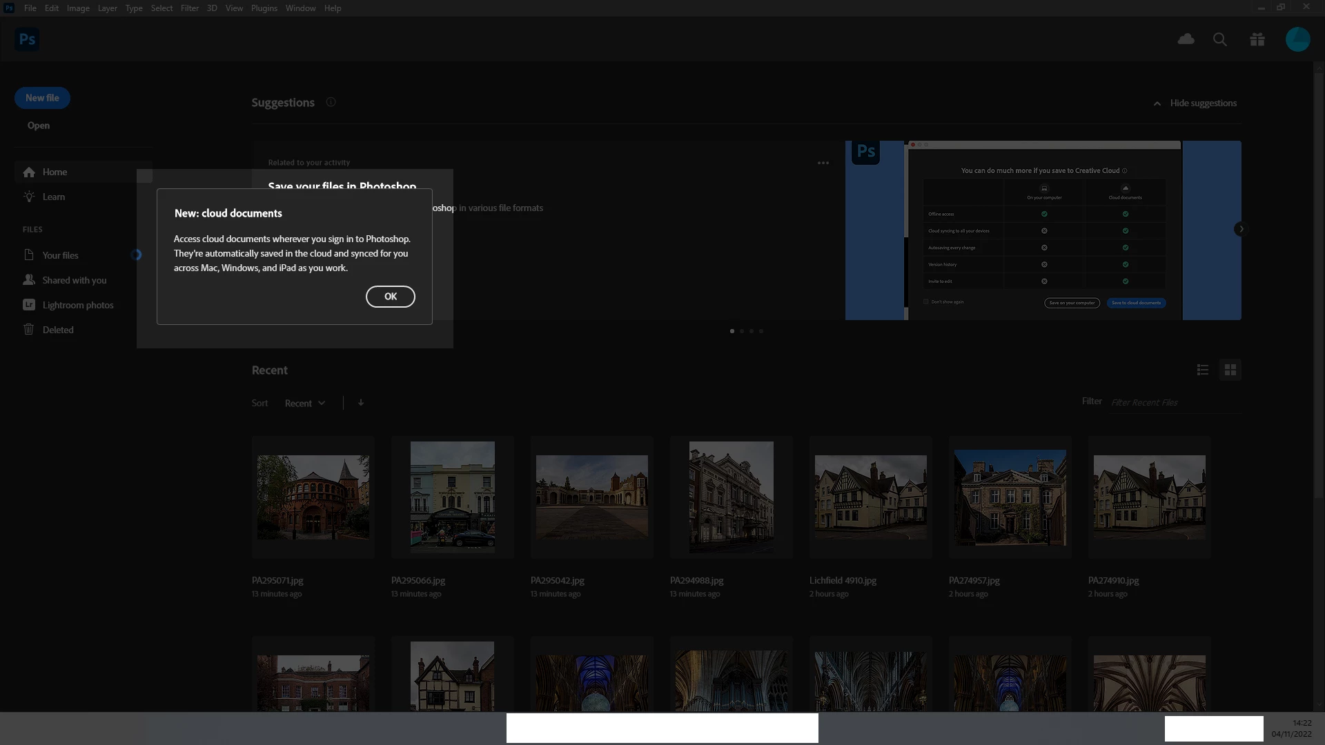 How do you get rid of this annoying "New : Cloud Documents" box? I do use, nor do I want to use the cloud, but am wary of clicking 'OK' in case Adobe launches a cloud based add-on to my settings. What happened to a simple 'X', 'No thanks' or 'Close' option in these pop-ups?