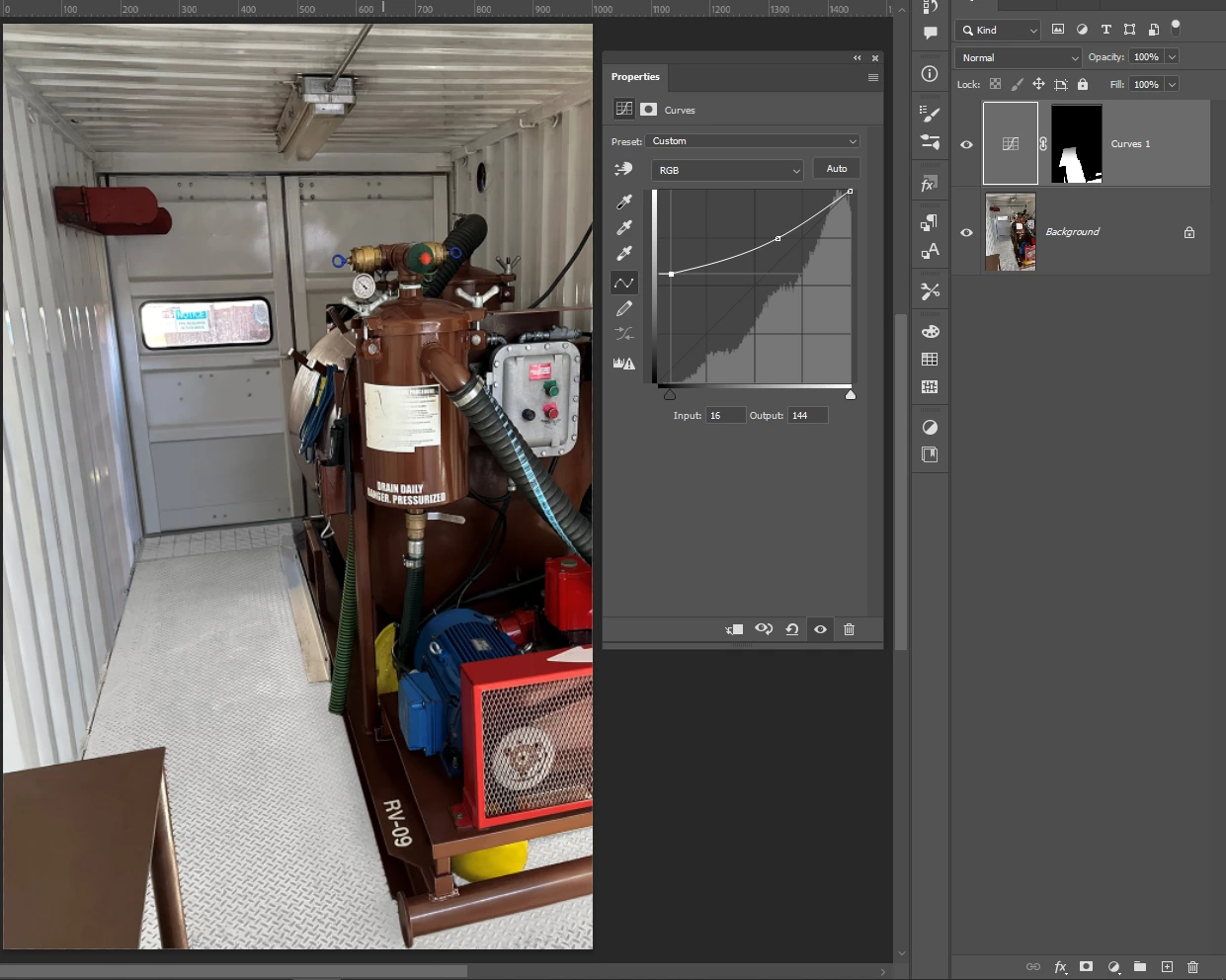 Hoping to get some tips about how make make this floor look not to beat up. I've attempted color range adjustment/masking, but it hasn't worked so well. I'd ideally like the whole floor to look similar to the area at the bottom right (under the front end of the machine). I have had success with sampling a small patch of the area under the machine and warping it to overlay the current beat-up flooring area, but its taking forever (I've only gotten about a 1/3 of it done), so I was hoping for a better suggestion on how to do this and still make it look realistic.