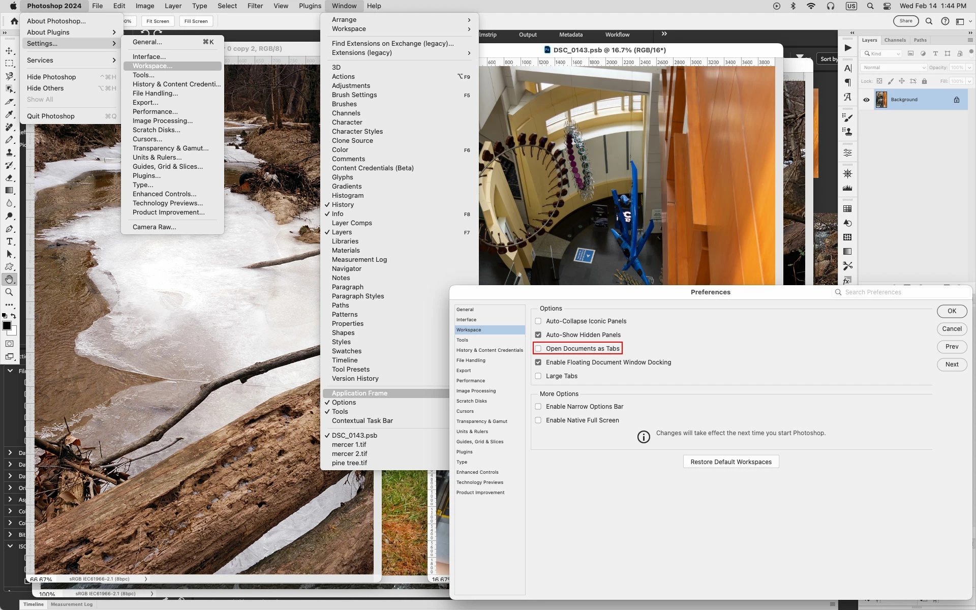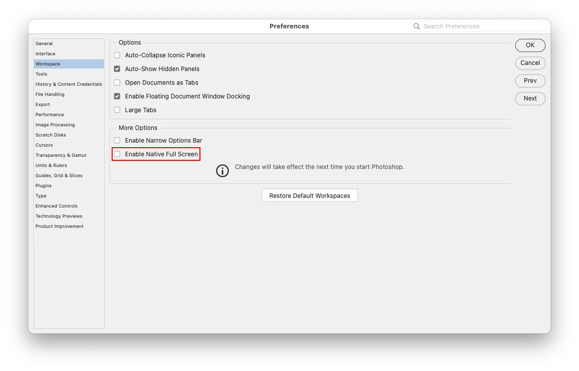 Application frame in Photoshop 2024 / Mac