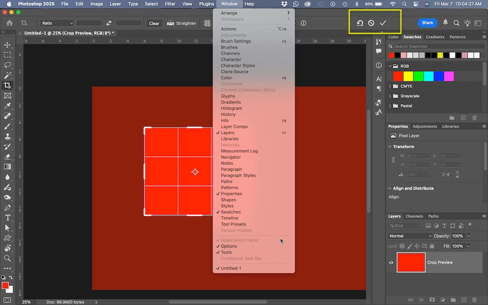 Go to Photoshop 2025>Settings>Workspace, uncheck Enable Native Full Screen, then restart Photoshop and see if Application Frame is available
