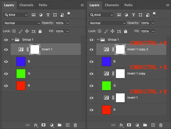 I know how to do this to look like the adjustment layer has been applied to all sublayers.