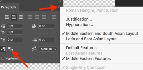 Hello, can you help me please? have a problem in the Photoshop in MacBook, I can't write Arabic, the litter is choppy and write lift to right, this is wrong Arabic is not like English.