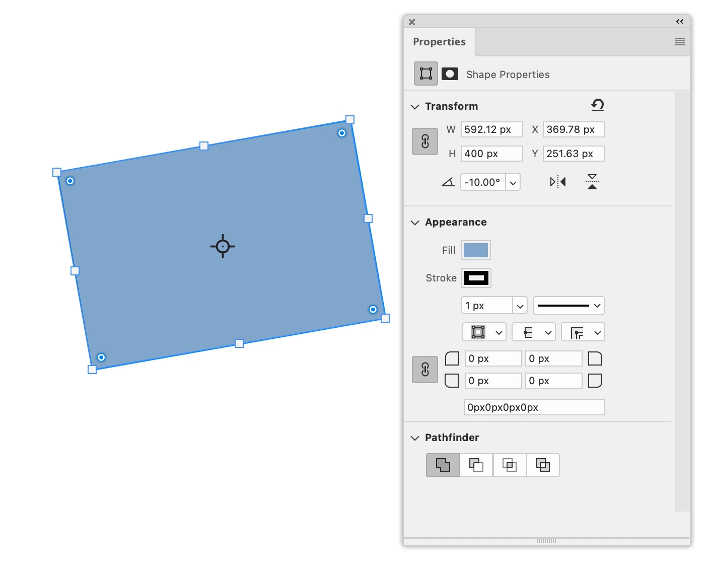 Paths drawn with the Pen tool will have only these Properties: