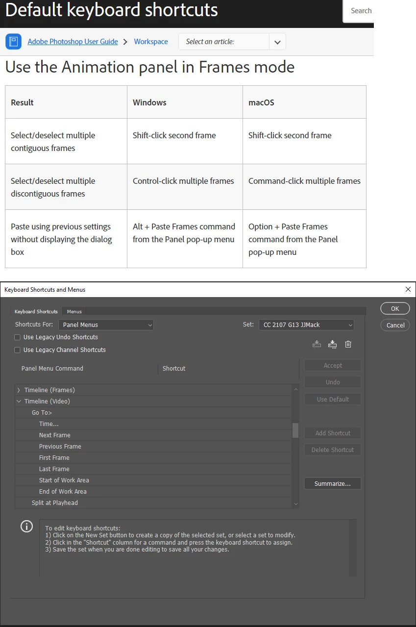 Somehow, I can't use the arrow keys to navigate the timeline in Photoshop. I've enabled keyboard shortcuts for the timeline, but when I try to add a custom shortcut using the arrow keys "the pressed key can not be used as a shortcut". This was never a problem on my mac, but I don't know if it has anything to do with the OS of my new laptop...?