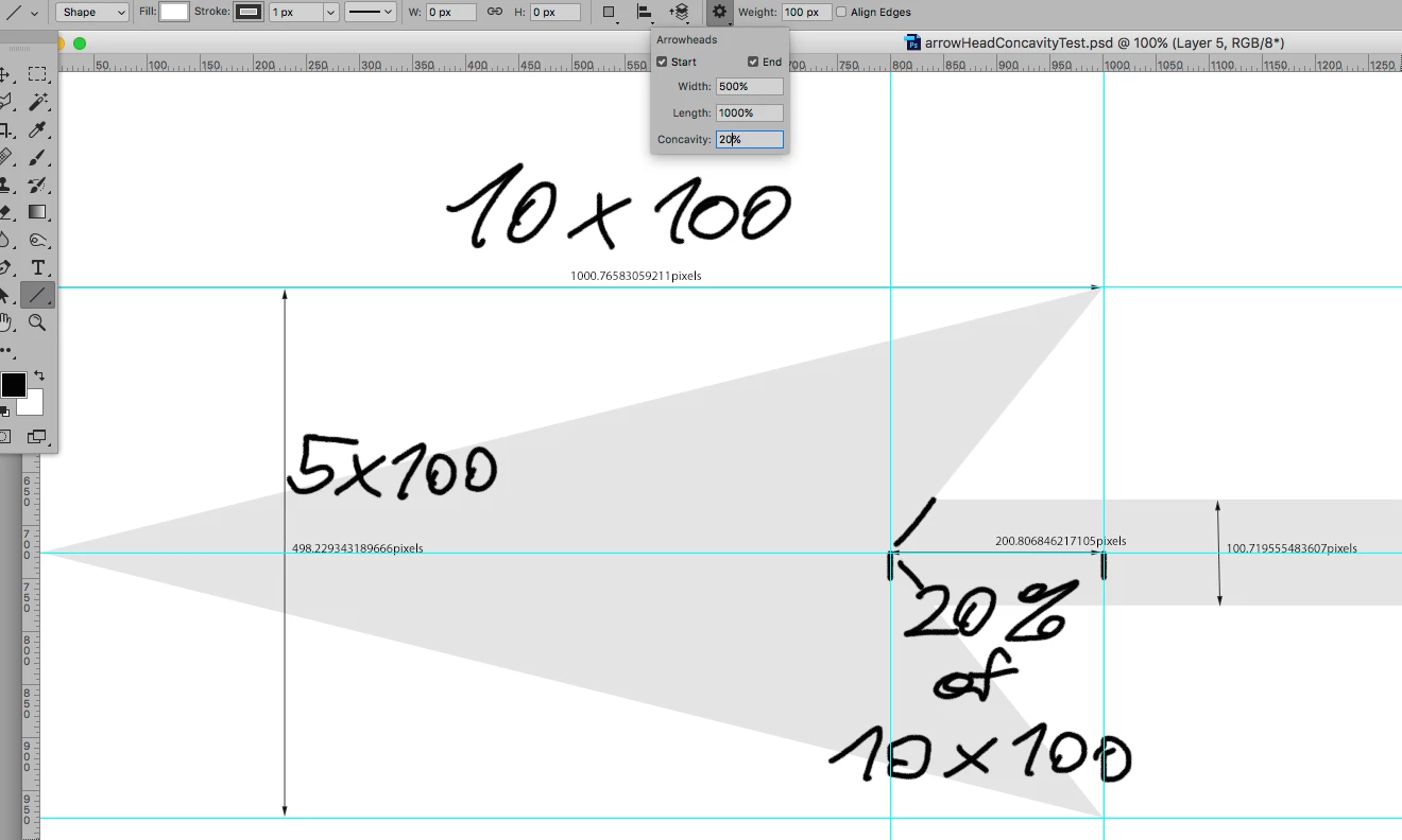 Okay, I'm stumped. I've been trying to figure out the geometry of the arrowhead and what the concavity setting is based on. The length of the arrow is based on the width of the line of the arrowhead, and is applied to the actual line length - not the actual arrowhead length. The width is, again, based on the width of the line. However, I've can't get the concavity. Somehow it's based on the width of the arrowhead, but I can't figure out how or what dimensions are used to calculate it.