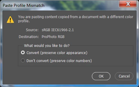 'Ask When Pasting' Profile Mismatch Warning Not Working