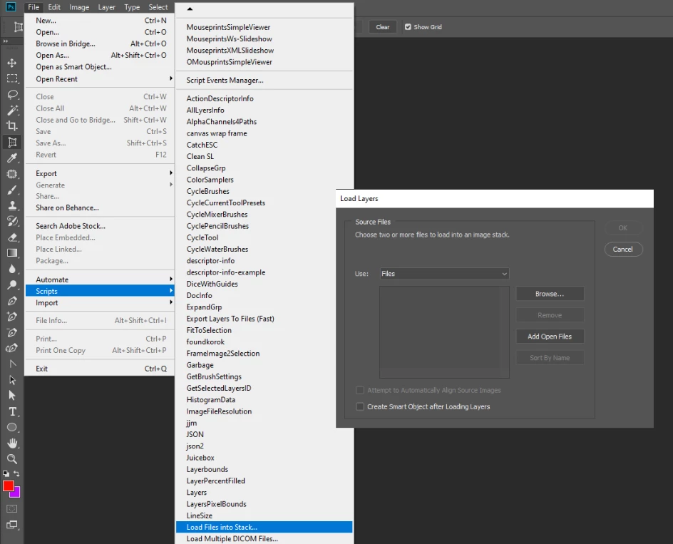 Using photoshop 2020. I want to do a focus stack. My 4 images are jpegs and dropped into photoshop from Finder. I select the layers but the options to align and blend are greyed out. According to the online guide i'm doing the right things, I think.???