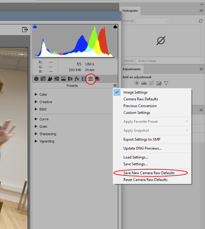 Auto-apply ACR standard settings to jpg files