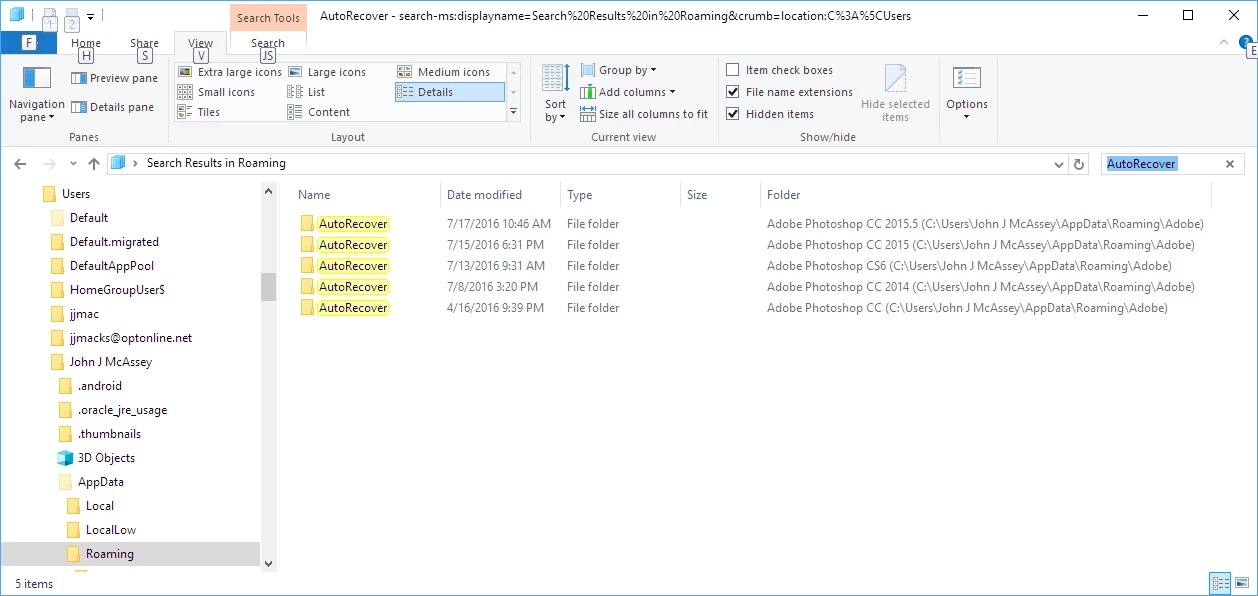 There is no folder called "AutoRecover" inside - C:\Users\Daniel\AppData\Roaming\Adobe\Adobe Photoshop CC 2015\