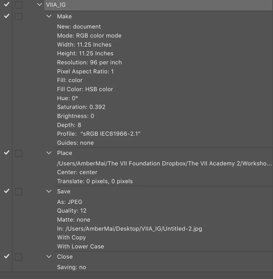 Hello, I have figured out how to create an action to open a black square, place an image, and then save it to a specified folder. I created a droplet so that i can drag and drop images to the droplet to quickly process files for social media. However, instead of processing the diffferent files, it always process the same original file used in creating the action. How do I make this action relative to the files I am dropping on the droplet? Thank you.
