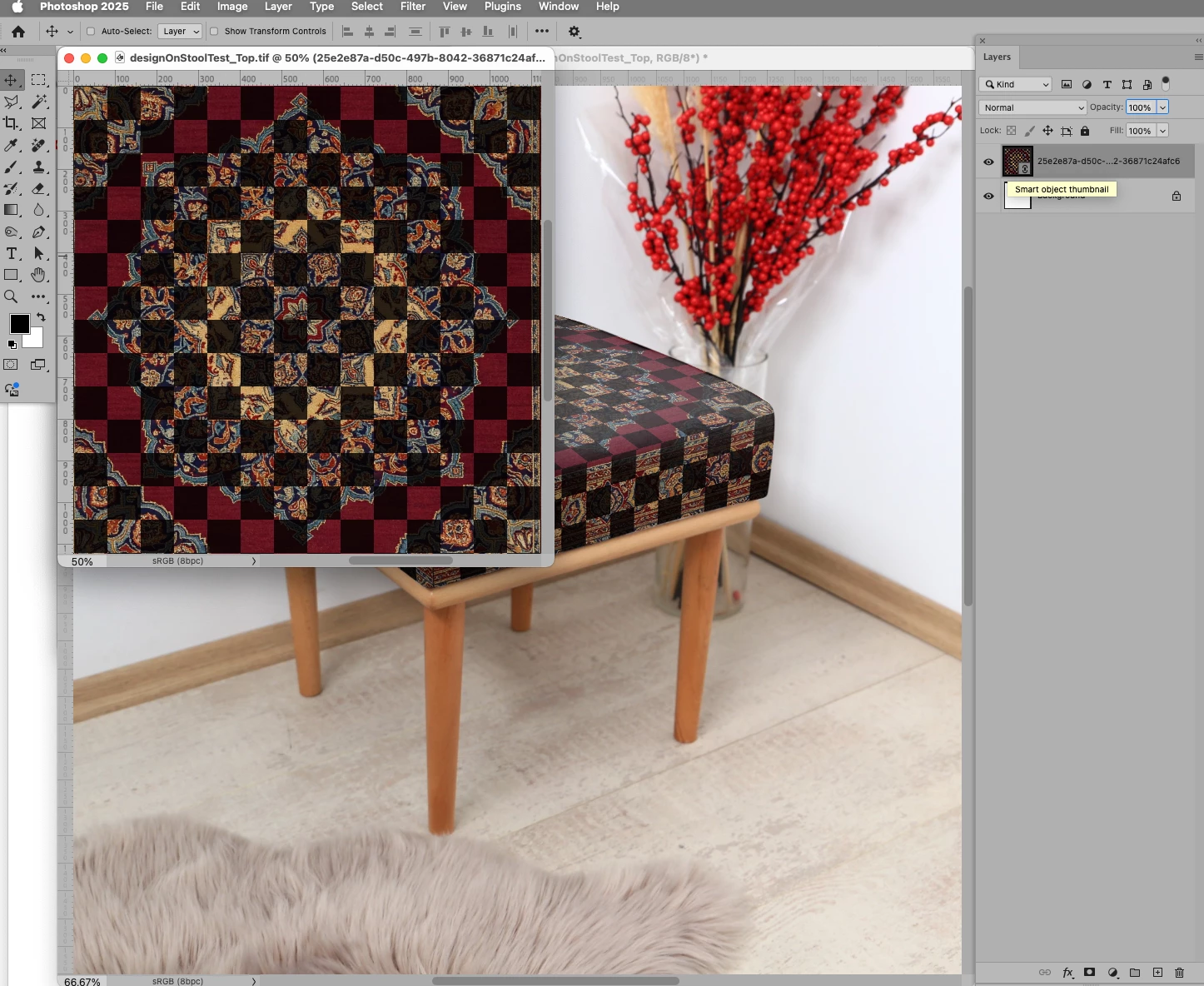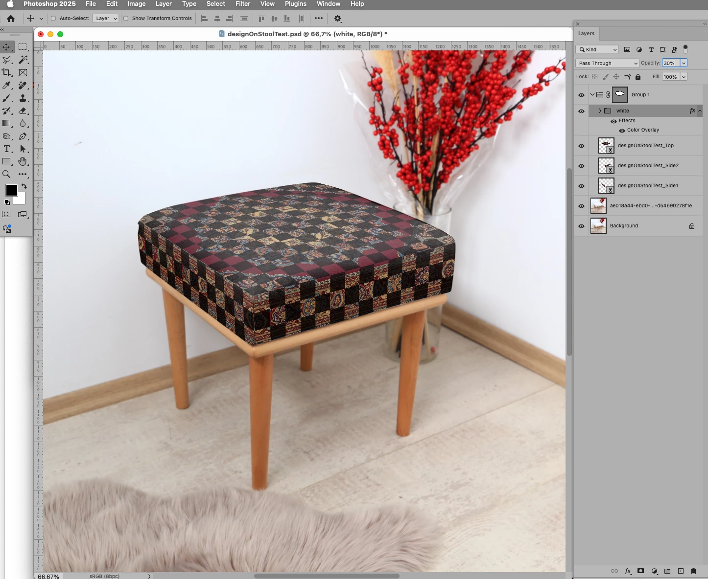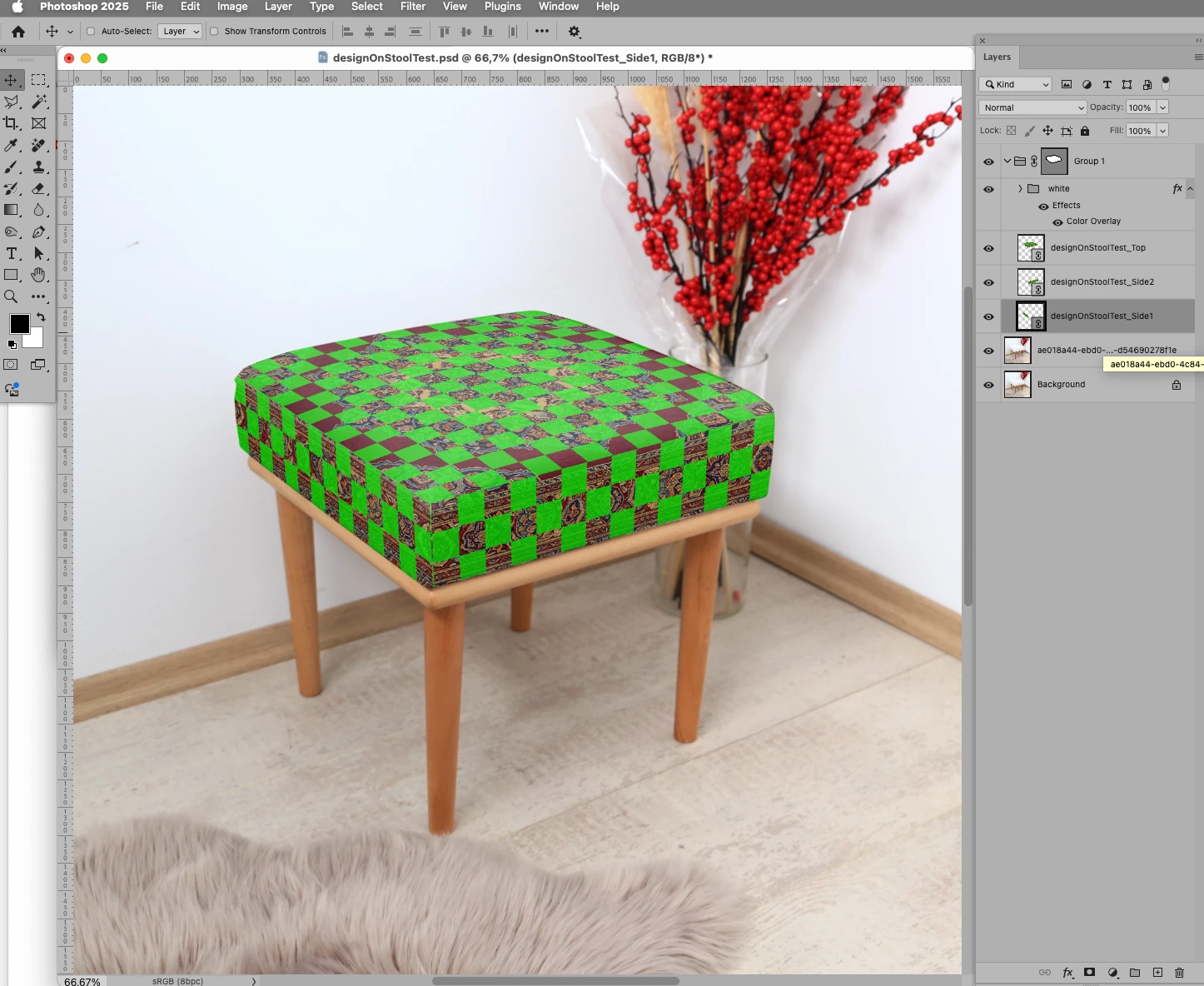 I'm trying to create a mockup in Photoshop where I apply a rug pattern onto a cushion. I have photos of the object (the cushion) from 7 different angles, and I want to automate the process using a script inside Photoshop. I can do this manually using the Vanishing Point tool, but it's very time-consuming. When I try to automate it with an action, it doesn't record the Vanishing Point steps. And when I try to use a script, it can't access the Vanishing Point tool either.