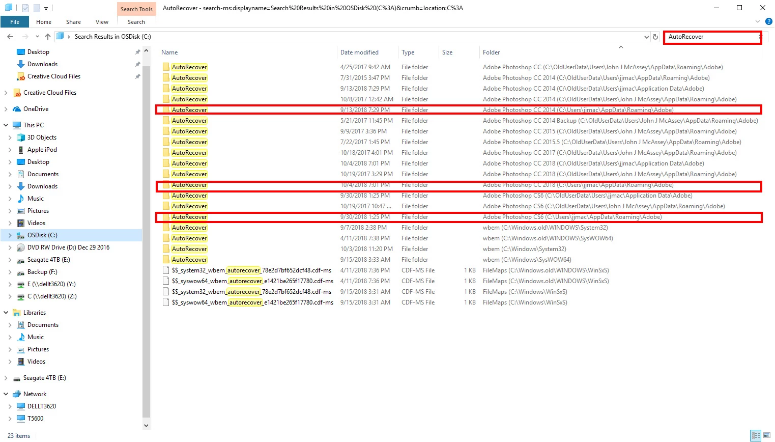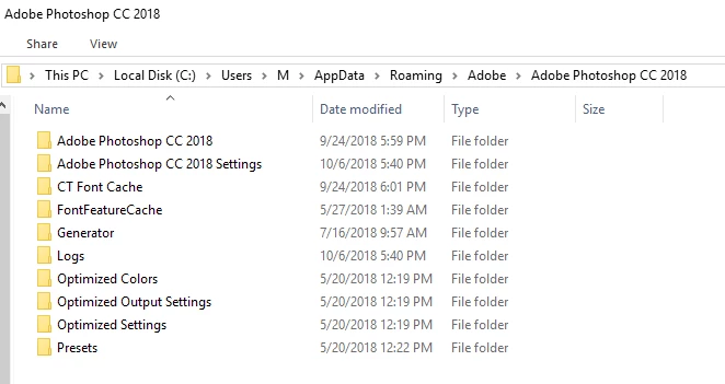 When I tried to go look up the AutoRecover folder, it's not there. "C:\Users\M\AppData\Roaming\Adobe\Adobe Photoshop CC 2018"