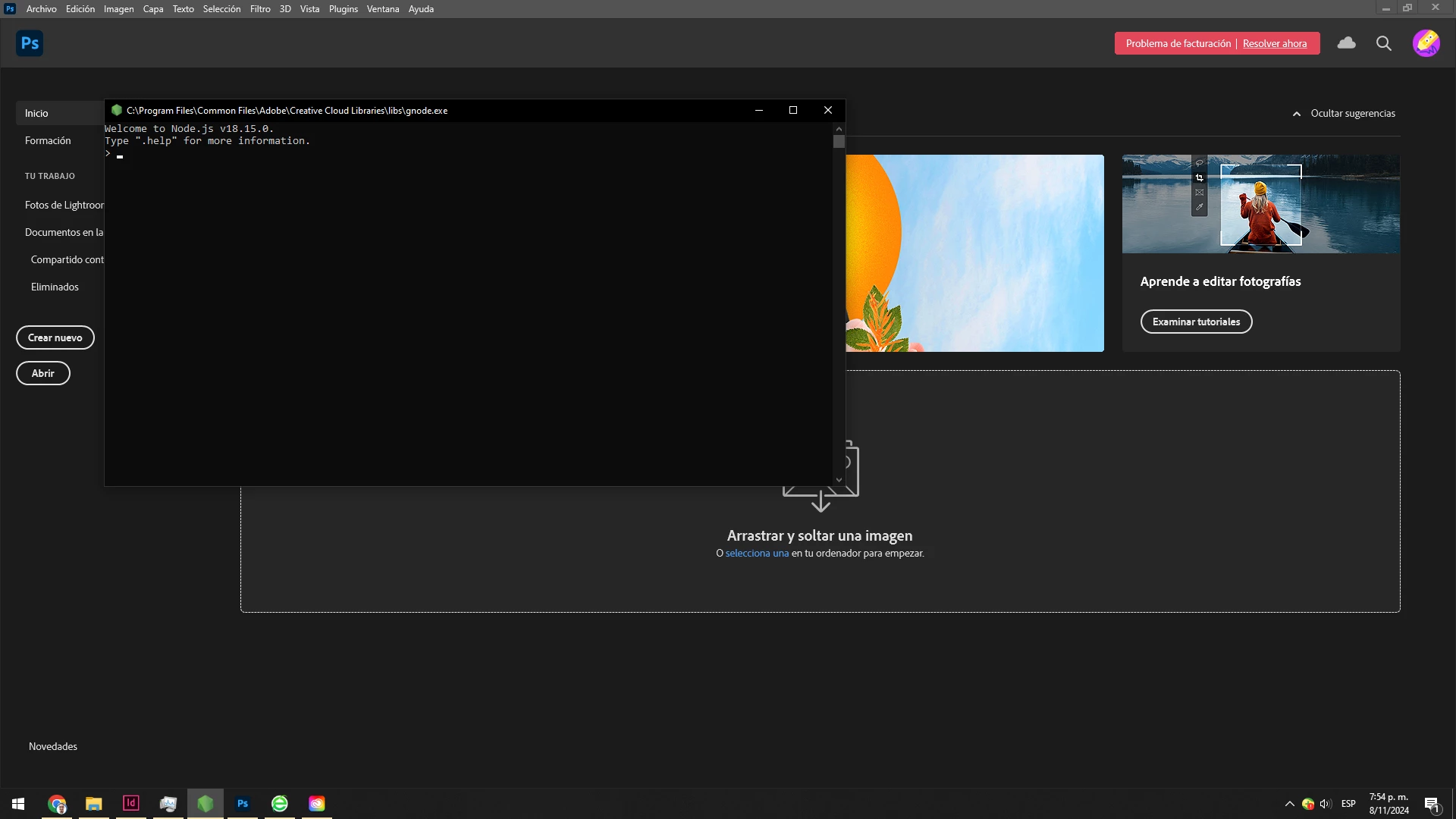 se me abre eso cada vez que abro photoshop y solo me deja abrir la version 2021 de photoshop si instalo las nuevas versiones de photoshop no me abren alguien sabe que puede estar pasando ??