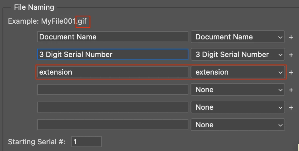 Batch Export - You must specify an extension for the output files(s)