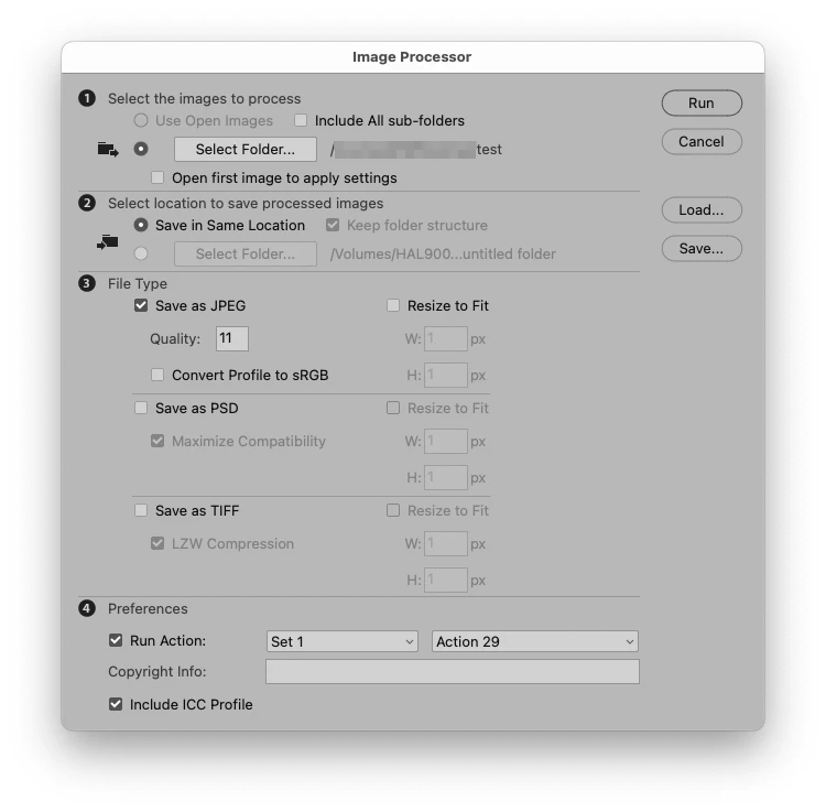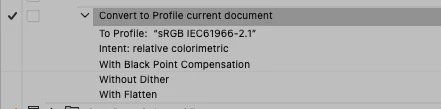 I have been unable to batch convert PSD's to sRGB color profile from Adobe 1998. I've recorded an Action with Edit/Convert Profile and also recorded an Action which added on converstion to Jpegs. I've utilized Save As and checked the box to save the sRGB profile that I created under Edit. I've tried the Image Processor. I've tried to record Export As in an action to convert to Jpeg/sRGB but the Action refused to record this method. I can convert single files, but not batch process which I need for a client. I have spent hours and hours trying to find a way to make this work. Even when the Action is recorded properly and I can view the steps in the Action panel, it refuses to apply the sRGB color profile. Also, I created TIFFs with LZW and tried to maintain the Adobe 1998 Profile, but it switched this profile to plain "RGB" in the File info panel and the color also changed from the files I had edited as PSD's with Adobe 1998.