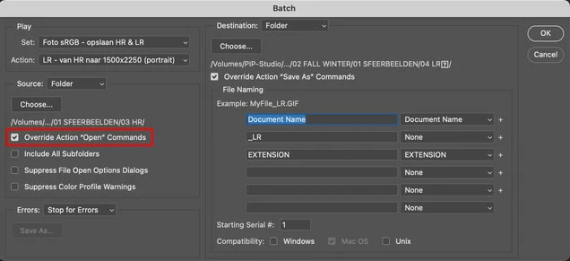 When using a batch with a created action I get a pop-up "The command Image size is currently not available"